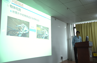 刘文予教授介绍了研究课题“基于弱监督学习的物体检测”,对基于弱监督学习的物体检测的课题研究进展作了相关汇报,就图像中的物体检测、语义分割技术的发展简介,图像检测技术在自动驾驶、动态监控、人机交互场景的需求与应用,汇报了在具体研究中的检测需求、实验数据生成、算法思路流程、实验检测结果等研究内容,分析了多项核心算法研究的算法性能,并对训练效率做了精彩总结。