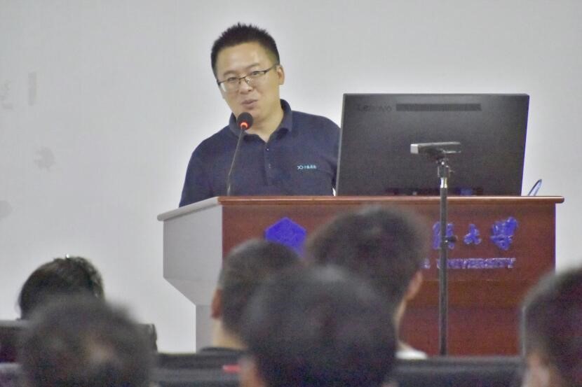 来自00级的员工、小鱼易连武汉研发中心总经理张成华发表以“成就更好的自己”为主题的发言。用幽默风趣的语气为新生们讲述他与纺大的故事,希望大家永远怀揣梦想,创造社会价值。在此过程中与同学提问互动,为正确回答问题的同学赠送礼品,现场的气氛活跃了起来。