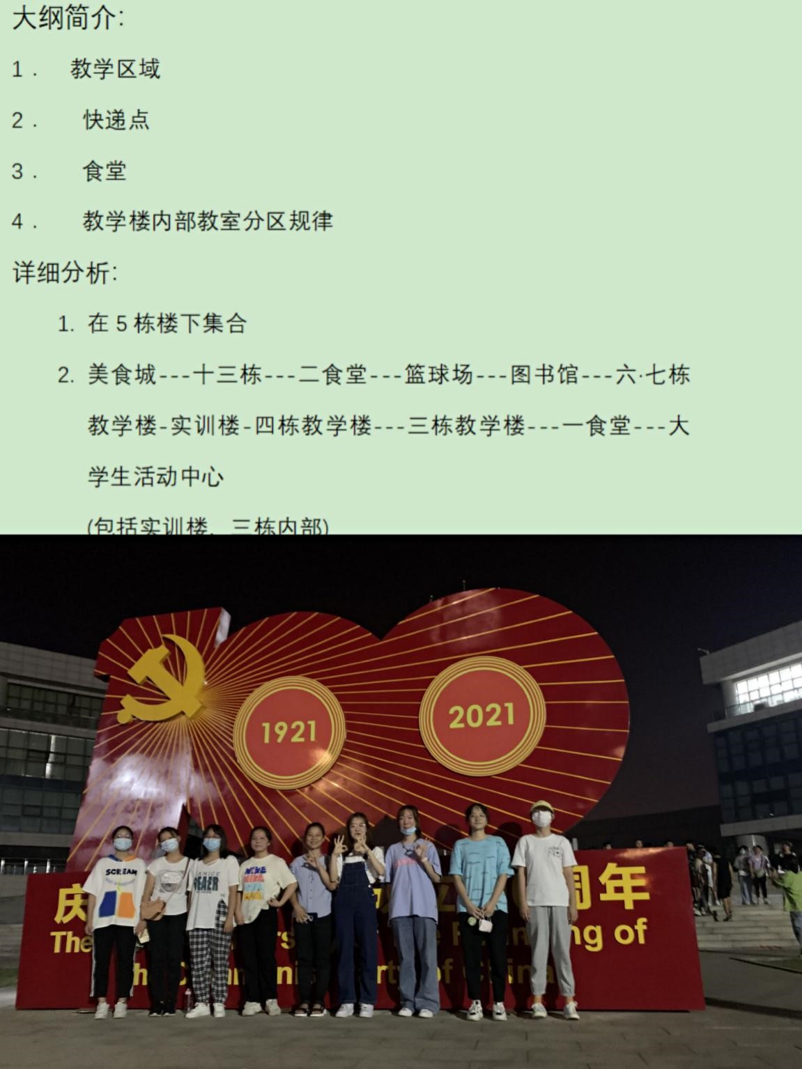 19日晚及20日上午,2021级14个新生班级进行了校园游园活动,每两个班自行组队,提前制定游园方案,并遵守疫情防控要求,尽量做到错峰有致。在老师和副班主任的统一带队下,带领同学们熟悉公司环境,了解校史校情,进一步增进爱校荣校情感。
