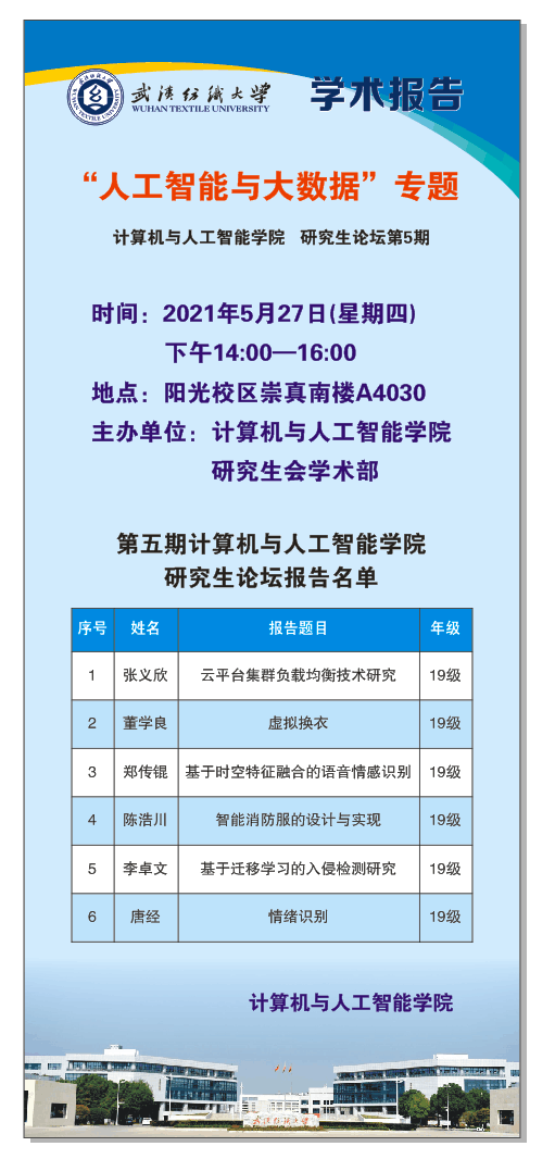 永利yl23411集团第五期研究生论坛 —“人工智能与大数据”专题