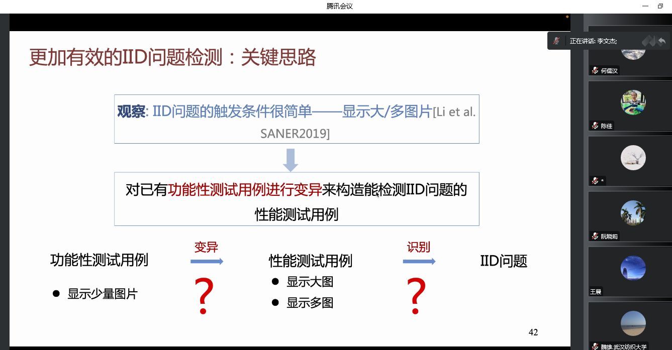 10月10日晚19:00,公司第237期阳光论坛在腾讯会议线上举办,南京大学李文杰博士受邀作题为“Android应用低效图片显示问题的理解和检测”的学术报告,该论坛由永利yl23411集团人工智能系系主任李丽副教授主持,青年博士们参与了该论坛。