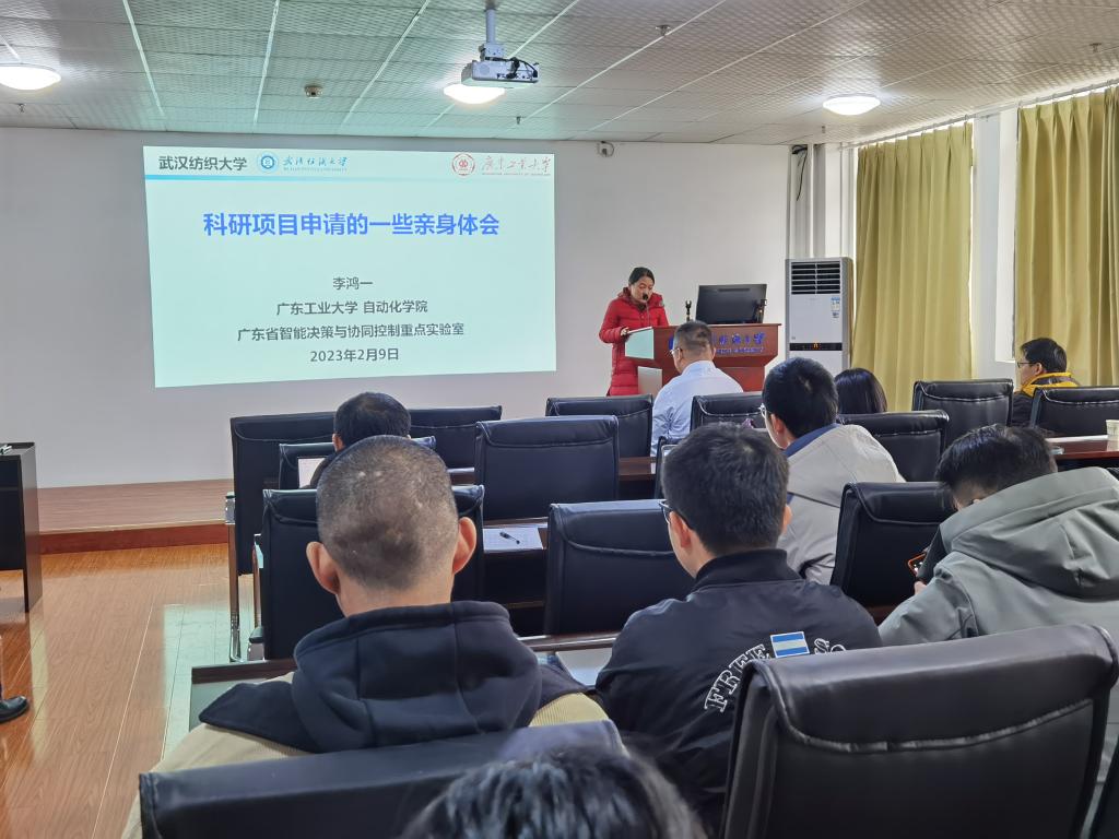 胡新荣对李鸿一教授的到来表示感谢,她指出,李鸿一教授是智能控制、协同控制及其应用研究方面的专家,具有成功申报各类科研项目的丰富经验,她希望,老师们认真听取报告内容,仔细领会报告精神,借助专家的经验,提高科研项目的申报成功率。