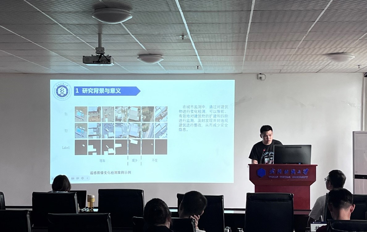 胡凌杰的报告题目是“基于深度学习的遥感图像变化检测算法研究”,他在论坛中提到深度学习发展迅速,在遥感图像变化检测领域取得了显著成果。该研究提出了一种基于HRNet和Transformer的孪生网络结构来检测双时相遥感图像中典型元素的变化,主要创新点有以下三点:(1)该研究使用 HRNet 可以更好地保留图像特征中的空间信息和通道信息; (2)使用循环tokens来丰富上下文信息,从而减少模型不可避免的偏差; (3) 使用余弦嵌入损失来衡量生成的掩码与地面实况之间的相似性。实验结果表明,IBIT 在 LEVIR-CD 和 DSIFN-CD 的多个指标上均高于 SOTA 方法,预测结果的边缘会更加平滑,效果更好。