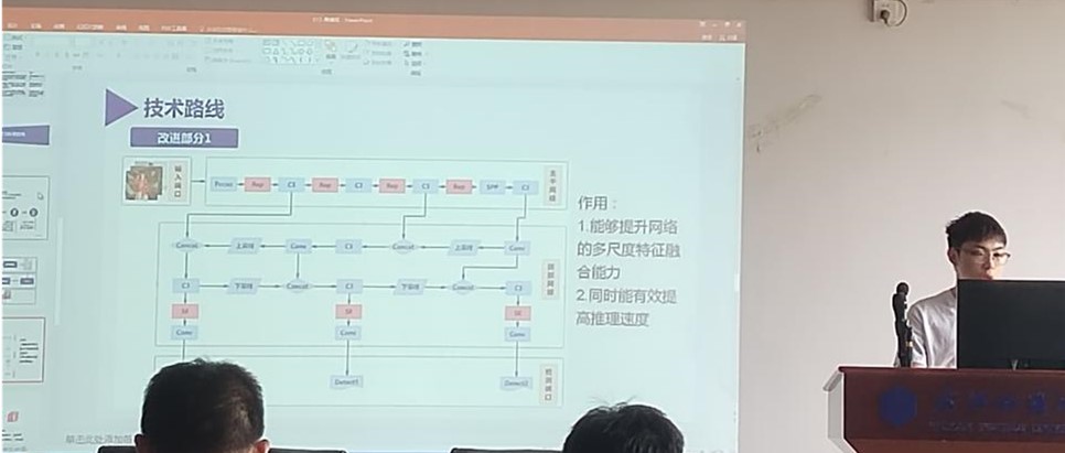 蒋博闻的报告题目是“基于优化YOLOv5s模型的现代汉服风格检测方法”。他指出,随着近年来汉服文化的推广,融合了传统汉服文化和当代时尚元素的现代汉服正引发越来越多人的关注。然而,大多数汉服爱好者并不能快速准确识别现代汉服的风格信息。为了普及汉服文化,他提出一种现代汉服风格检测算法,以辅助判断汉服风格,该算法在YOLOv5s模型的基础上,通过对模型和函数的改进和优化,达到实时且准确辨识汉服的风格,对传承发展中国优秀传统文化提供可靠的技术支持。