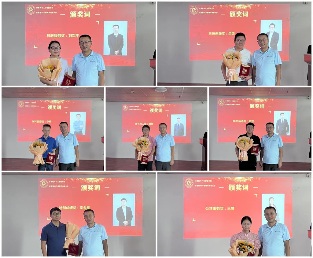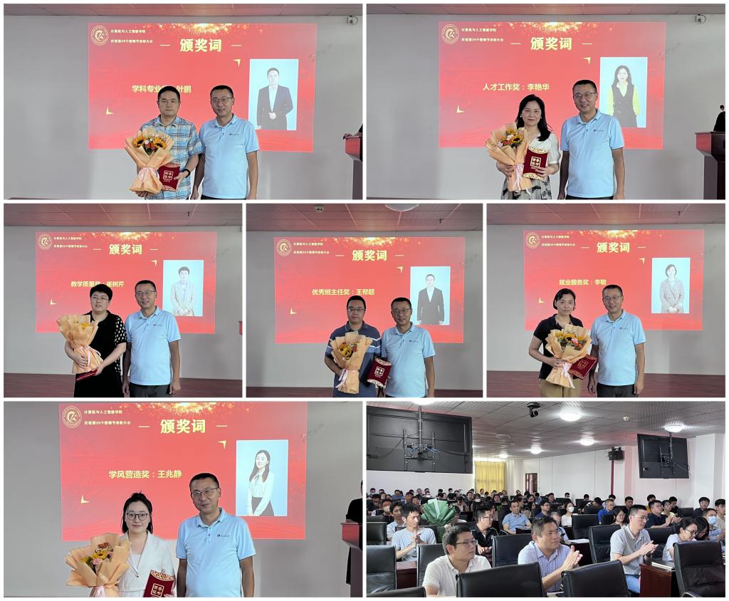 会上,晏伟隆重介绍新入职的5位教师,欢迎他们加入计算机公司的大家庭,对4位奔赴新的工作岗位的教师表示感谢并欢送。