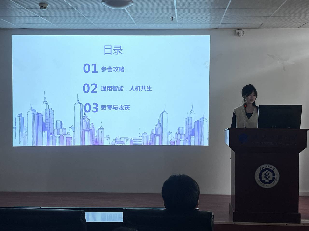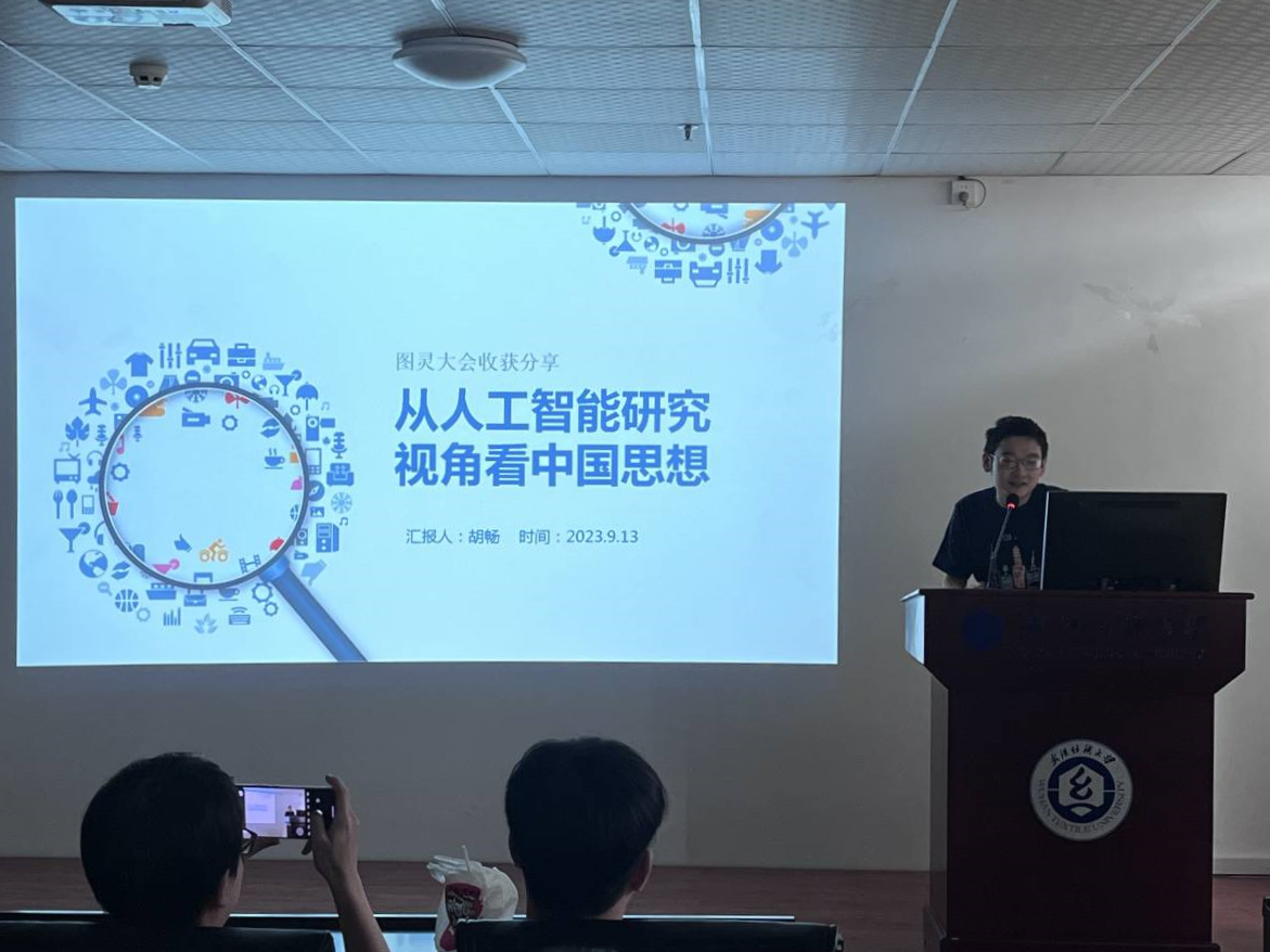 胡畅同学分享了朱松纯教授在图灵大会的讲座题目:"为人文赋理,从人工智能研究视角看中国思想"。从物体到智能体、人类文明和人机共生的演进历程中,都使用势能函数U来建模。重要的质变是出现了具备自我意志和价值驱动的智能体,形成结构化的认知空间,产生各种复杂的社会结构,由价值函数V来建模。朱教授分析了儒学的主线,包括仁义、王道、理学和心学,这些思想将指导人工智能的发展,以通用人工智能助力中国式现代化建设。