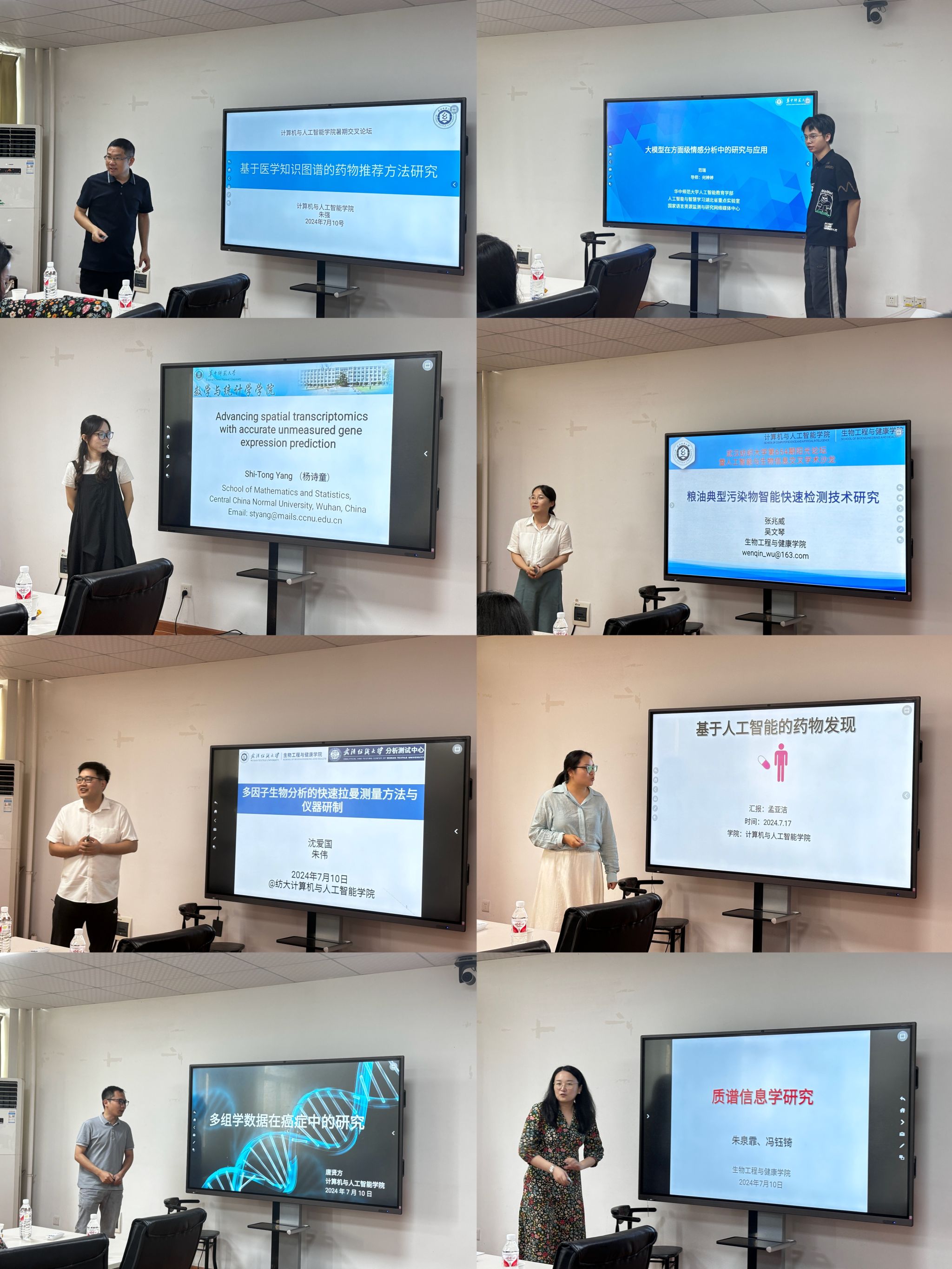 围绕人工智能与生物信息等内容,来自华中师范大学、公司生物工程与健康公司及永利yl23411集团的八位博士依次作了详尽而深入的研究成果报告,内容涵盖了医学知识图谱、基因表达预测、多层次组学数据分析等多个方向。冯钰琦教授对博士们的报告给予了细致的指导。