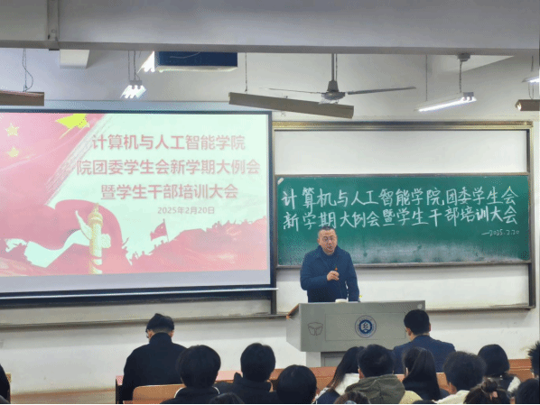 2月20日下午四点,永利yl23411集团院团委员工会于03-120教室召开2025年春季学期新学期大例会暨员工干部培训会,旨在为新学期员工会各个部门进行规划和指导。公司党委书记晏伟、公司党委副书记向涛、公司全体辅导员、2024级全体员工干部及院团委全体员工骨干参会,会议由院团委指导老师易凡主持,
