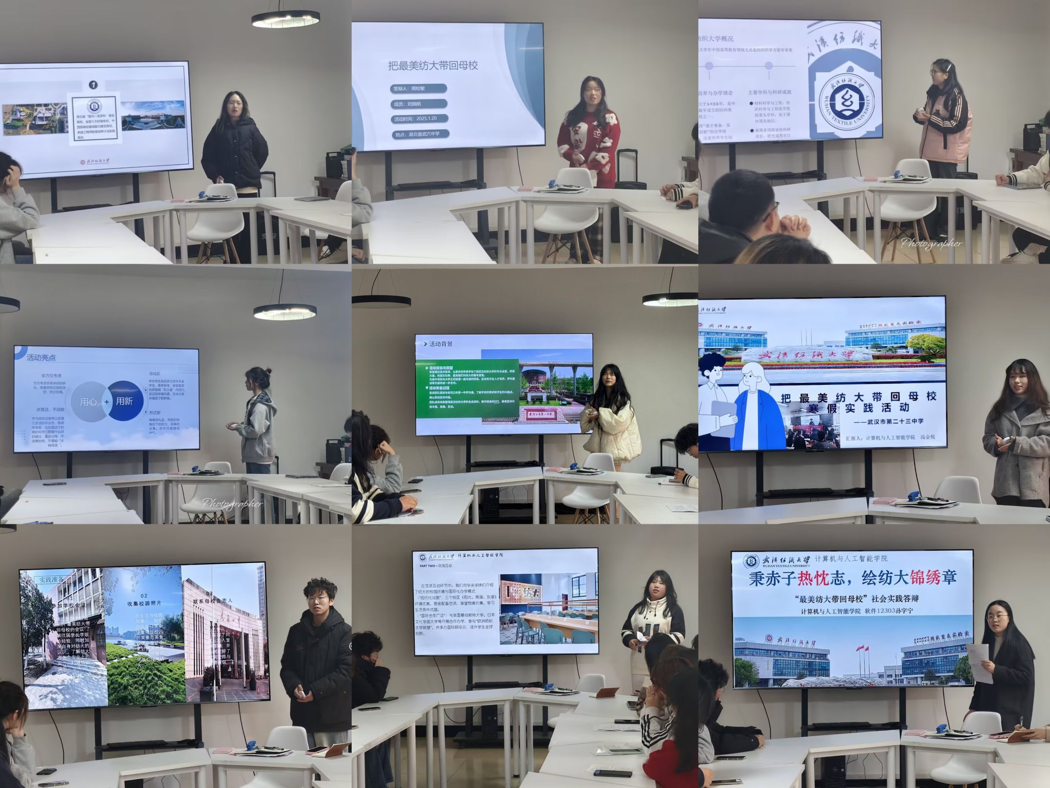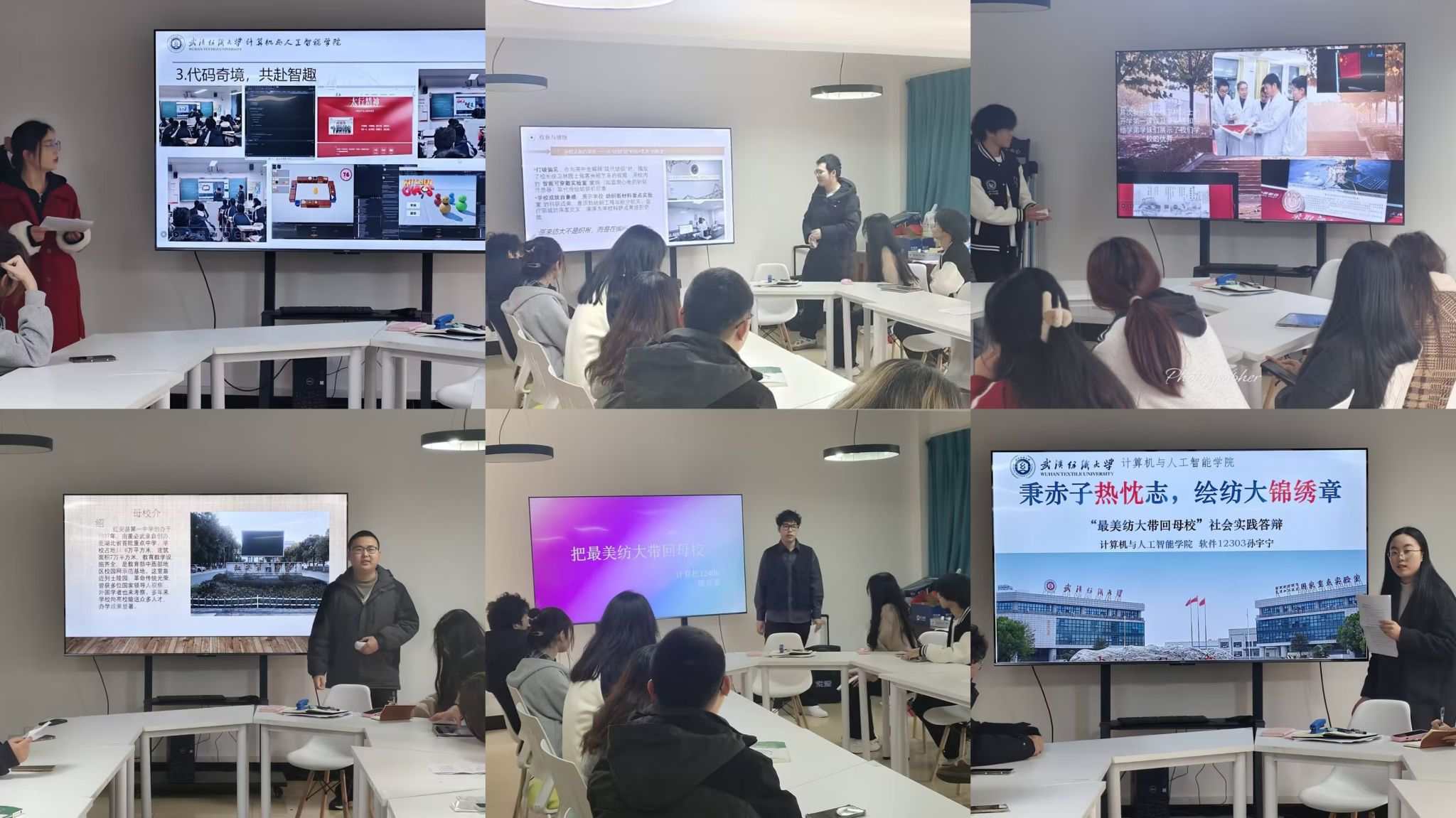 践行崇真尚美精神,将最美纺大带回母校。答辩会上,15支实践团队负责人按照抽签顺序依次进行答辩,通过PPT演讲,结合视频等形式讲述实践过程、展示实践成果、分享实践心得。有的团队回到家乡,为当地高中生带去前沿的科技知识和励志故事;有的团队结合自身专业特色,开展了丰富多彩的科普讲座和互动体验活动;还有的团队与高中生进行面对面交流,分享学习经验、解答升学疑惑,为他们加油鼓劲。