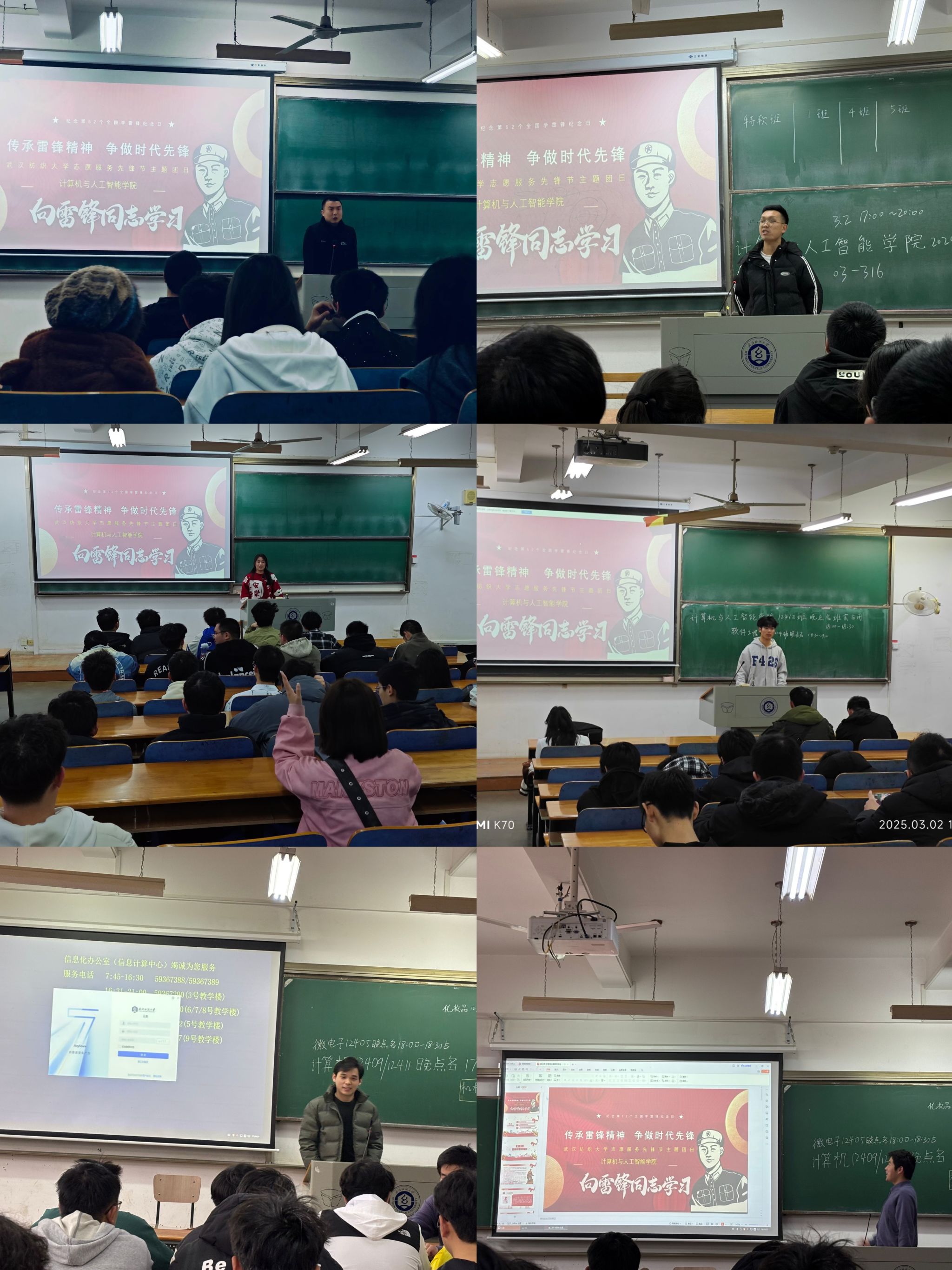 班会伊始,各班团支书带领大家重温了雷锋同志的生平事迹,学习了雷锋精神的深刻内涵和时代价值。同学们都为雷锋同志的奉献精神所动容。随后,同学们围绕“你所认为的雷锋精神是怎样的”展开了热烈讨论。同学们积极性很高,回答踊跃,计算机类12408班钟同学认为“雷锋精神的宗旨就是无私奉献,乐于助人”,这一回答引起了很多同学的共鸣。