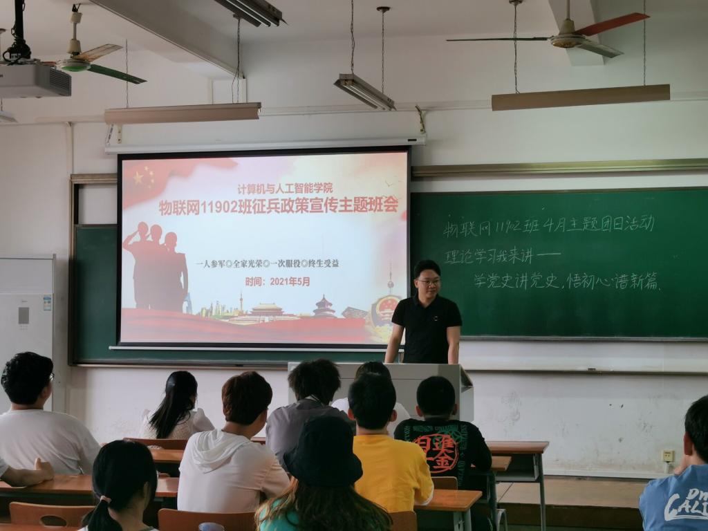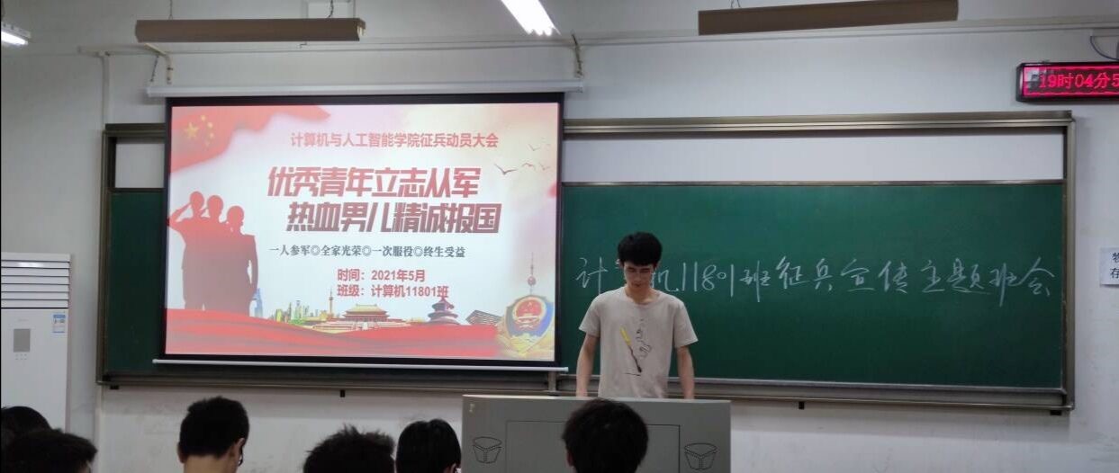 为响应国家号召参军入伍,把爱国之心化为报国之行,加强老员工国防教育,鼓励员工积极参军,5月5日晚,永利yl23411集团各年级于崇志楼组织召开征兵政策宣传主题班会,全院员工参与此次主题班会。