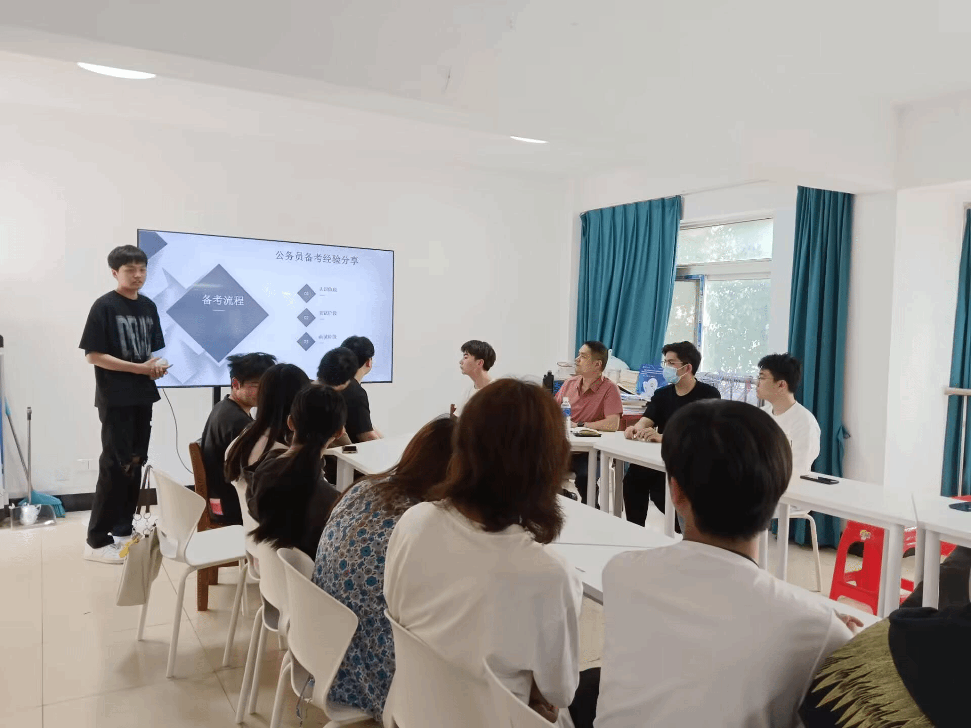会上,2021级三位学长分别就考研、考公、求职作经验分享。考研方面,需早作准备。学长强调,要积极参加学科竞赛,认真学习专业课程,很多科目都不止需要一年时间准备,要提升数学和外语能力,他表示自己重点学习了数据结构、计算机组成原理等课程,并通过合理的时间管理工具(如番茄todo)安排学习任务,同时积极参加算法编程、数学建模、智能车竞赛等赛事,通过竞赛深入理解课程知识。在竞赛过程中,会有课程压力大、知识不足等困难,可以通过优化时间管理和强化知识学习,克服这些问题,并在取得一定竞赛成绩后参与科研项目,遇到问题及时沟通。