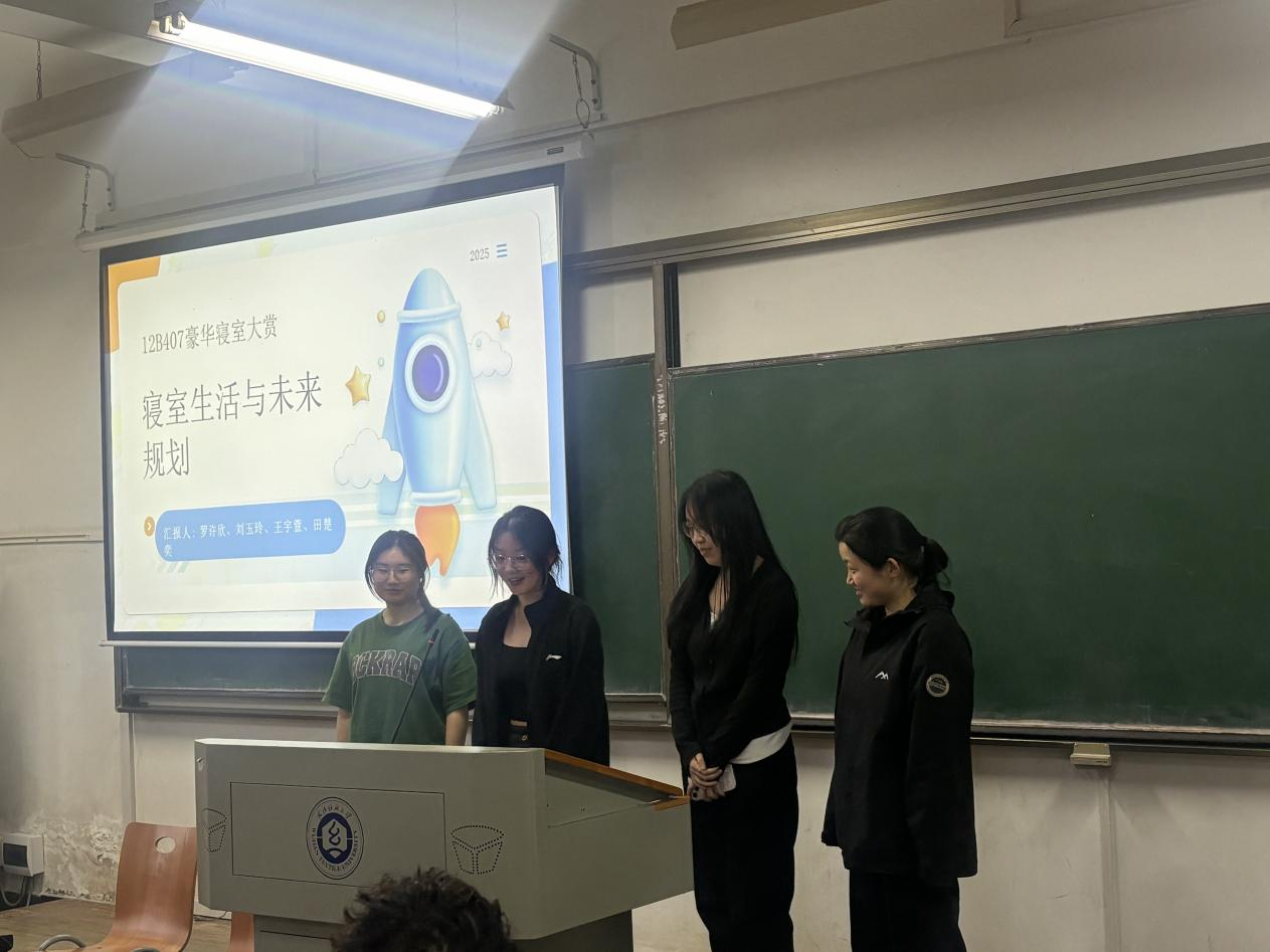 12B407宿舍长李维一表示,关于宿舍的期末情况,整体上不错。她们根据共同制定的寝室公约,分工协作,各司其职。在这个小家庭里,大家一起学习,互相帮助对方,成功的把这个看似平平无奇的小房间变成四个人温馨的小家。未来,她们会积极参加各类竞赛,共同努力进步。