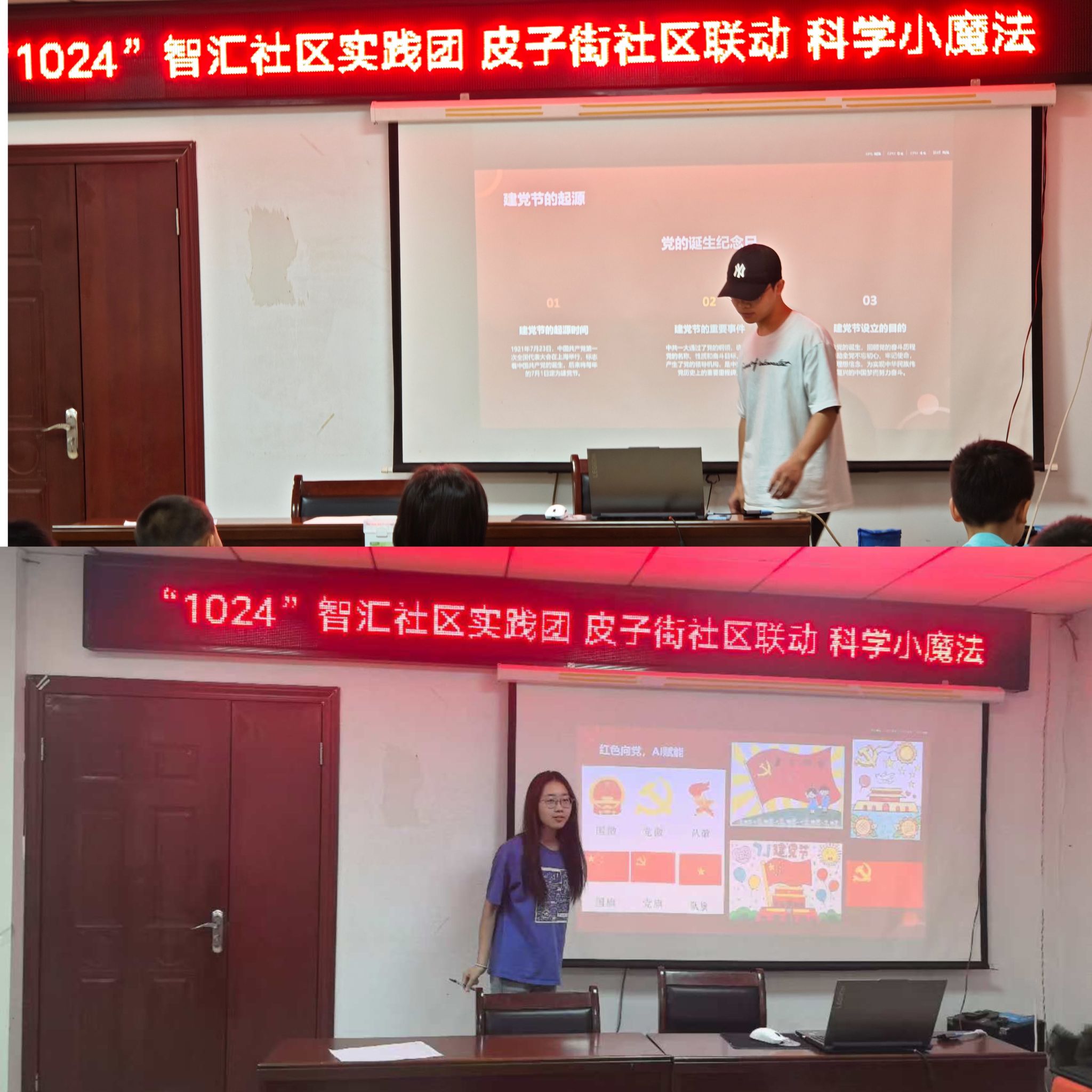 7月1日,永利yl23411集团“1024”智汇社区实践团与皮子街社区携手,开展了一场别开生面的"红色向党,AI赋能"党史教育活动,为社区小朋友带来了一次难忘的学习体验,也为党的生日献上祝福。