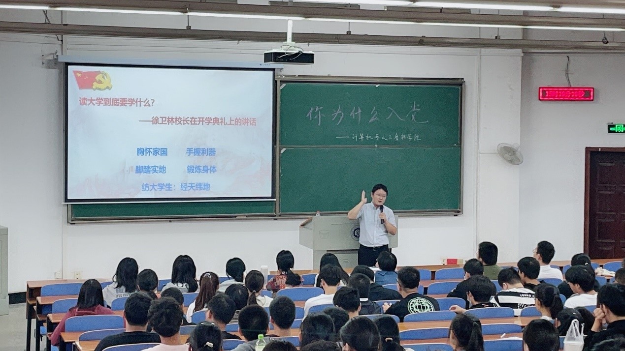 为促进新生更好的了解党、认识党,学习中国共产党的优秀品质,产生积极向党组织靠拢的动力心向;同时加深新生对专业的理解与认知,提升大学学习规划的合理性和科学性。永利yl23411集团邀请了公司党委副书记涂耀威、软工系史爱武博士,于10月7日14:20在3号教学楼T202和319教室为新生作了《你为什么入党》和《大学4年,怎样成为优秀的自己》的主题讲座。涂耀威副书记、史爱武博士、新生辅导员及全体2021级员工参加了此次讲座。