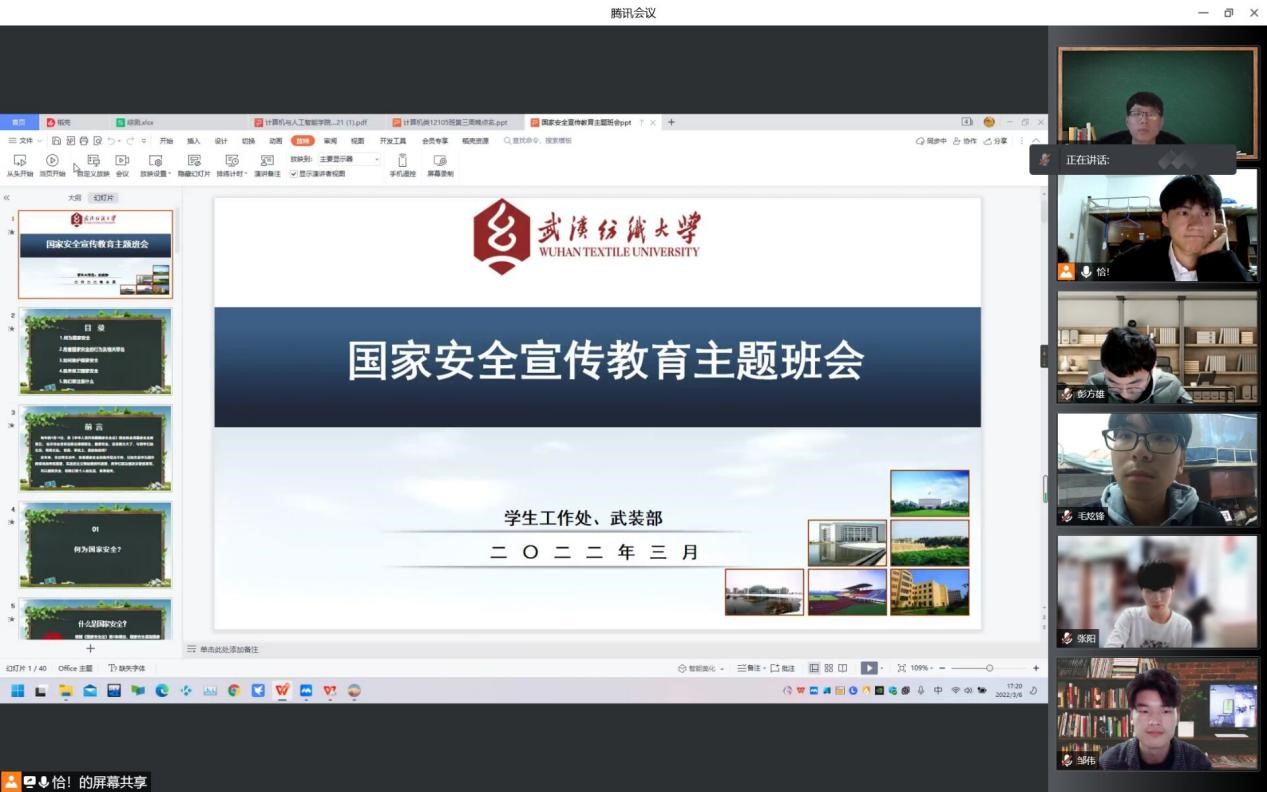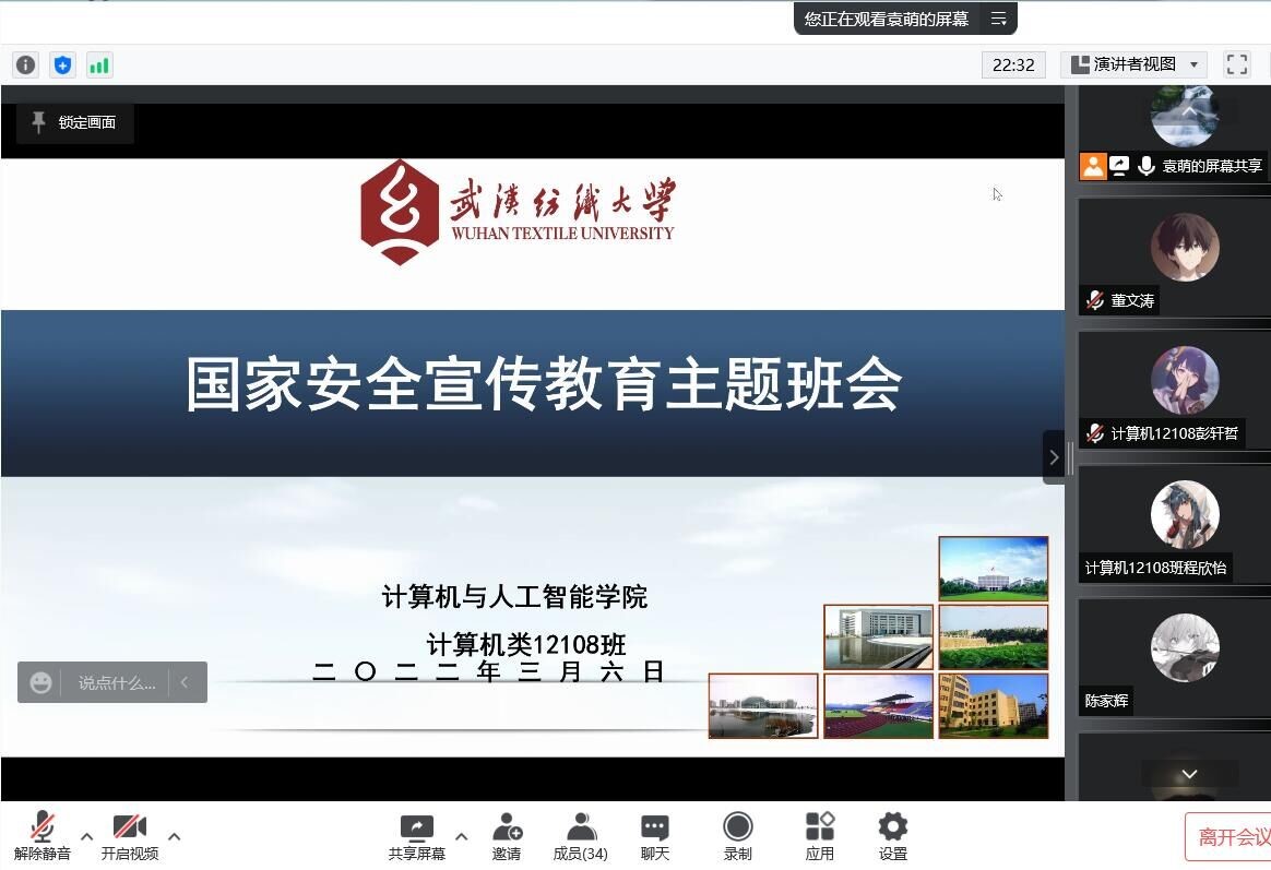 为深刻认识党的百年奋斗在维护国家安全上的重大成就和历史经验,进一步认清国家安全形势,引导广老员工理解中华民族命运与国家关系,践行总体国家安全观,将国家安全教育融入员工日常教育活动中来。计算机公司于3月6日晚点名班会时间,积极组织各年级开展了“开学第一课”国家安全宣传教育活动。
