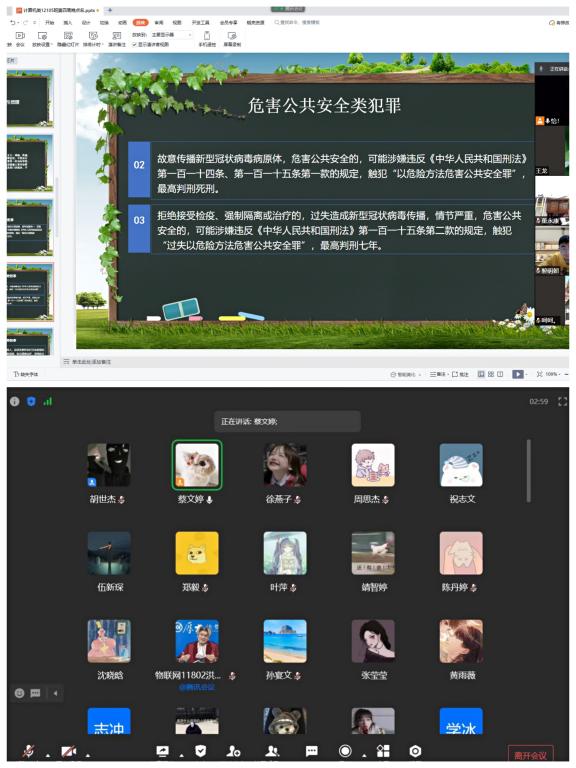 班会上,辅导员、班主任和班委根据典型案例强调了防疫的重要性,图文并茂地讲解了防疫知识,并就安全卫生内容进行了重点强调,同时科普了危害公共卫生类犯罪和扰乱公共秩序类犯罪的相关条例。