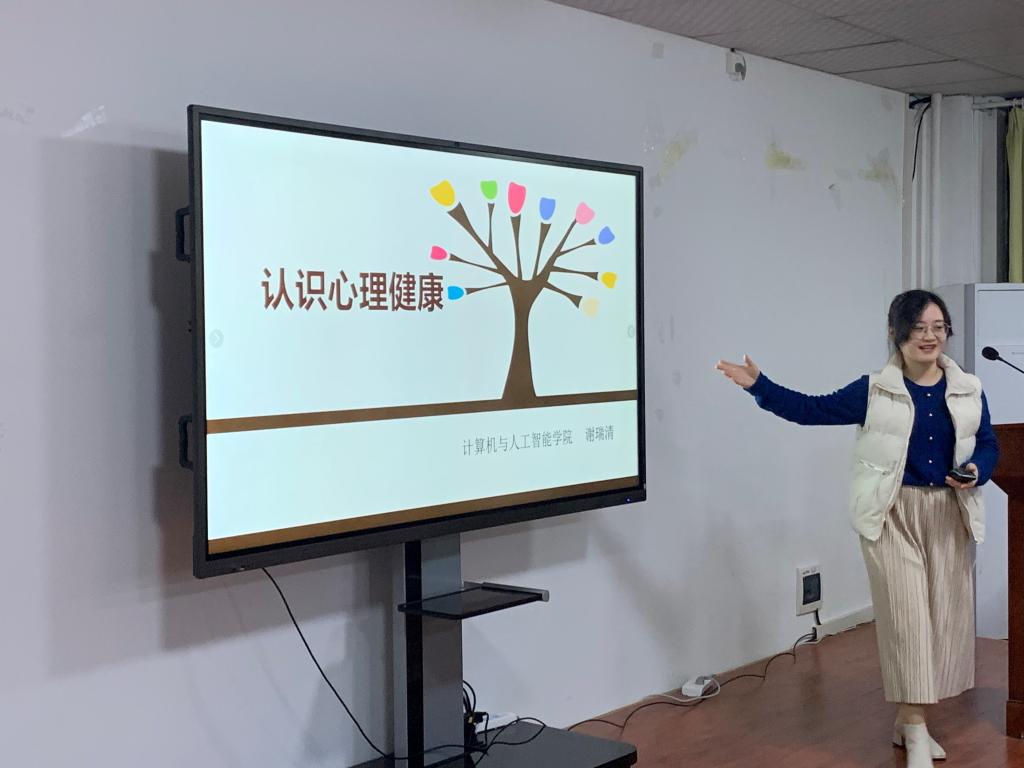 谢老师告诉同学们心理问题也要得到重视。通过短片《鱼之殇》,向同学们展示了大多人的心理状态。随后她又向我们介绍了几种常见的心理问题,令人印象最深的是抑郁症。通过短片《I had a black dog》表明了每个人心中都有一只黑狗,而你的一切心理状态都表现于对待它的态度。当与黑狗达成和解,就意味着与生活和解,不被它所压迫,实现拒绝抑郁。同时分别列举了强迫症、精神分裂症、失眠症等问题,并结合自身生活经历向同学们分享了对抗睡眠障碍的五分钟睡眠法与布钦疗法。
