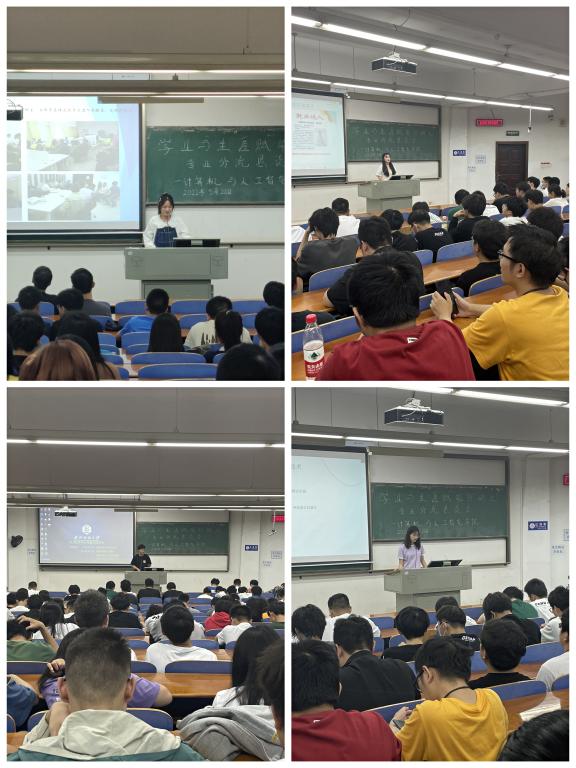 最后由人工智能12001班的蓬博翔分享了人工智能专业的发展前景、专业核心课程、学习方法,并结合自己的比赛经历,介绍了一些有意义、有价值的赛事,并就从哪些方面准备比赛做了简介,号召大一同学们要珍惜老员工活,把握好自己的人生。