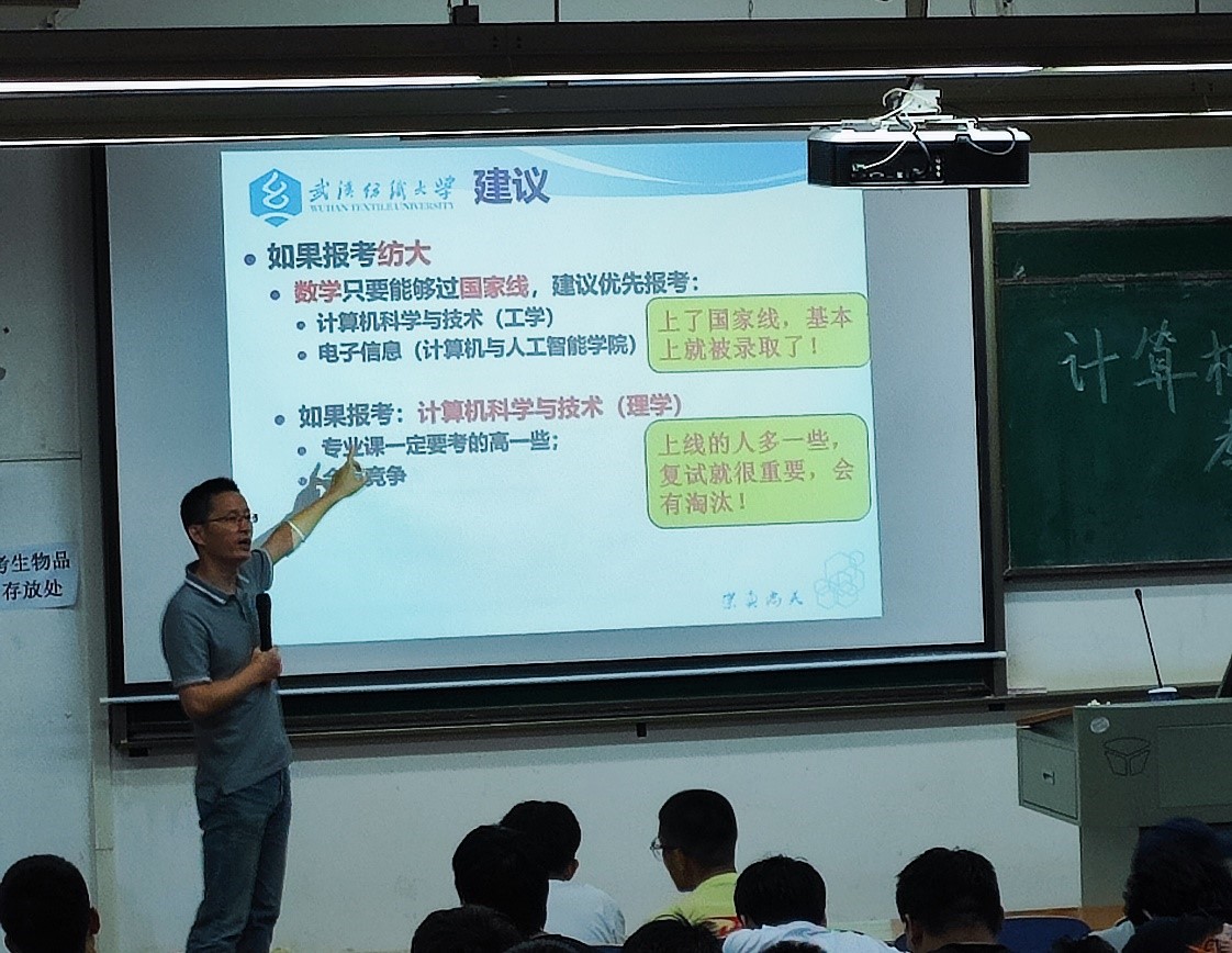 会上,彭涛教授详细介绍了近几年全国以及公司相关专业考研招生的整体情况,分析了公司19级本科生在考研过程中将要面临的形势和困难,并给大家提出几点建议:一是要综合评估自身实力,确定合理目标,理性择校;二是要制定科学的复习计划,持之以恒,不要打疲劳战;三是要不忘初心,脚踏实地,劳逸结合,保持身心健康。