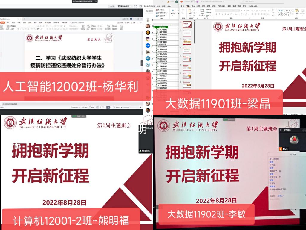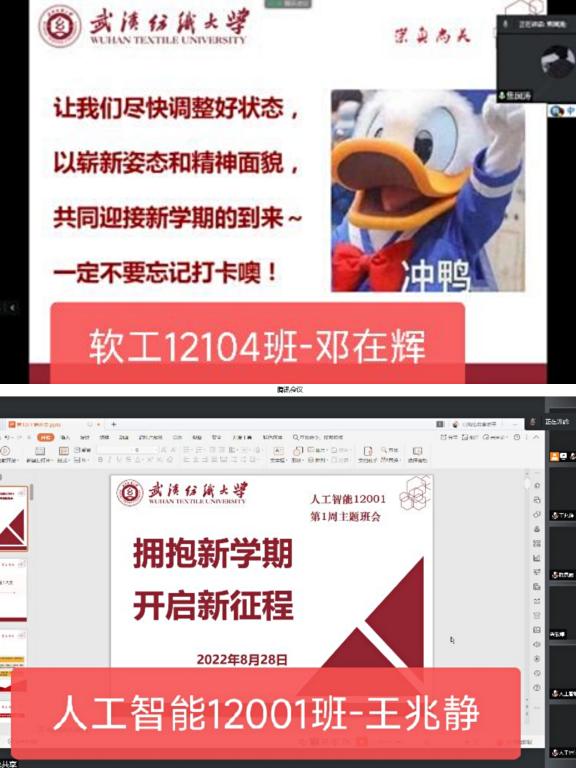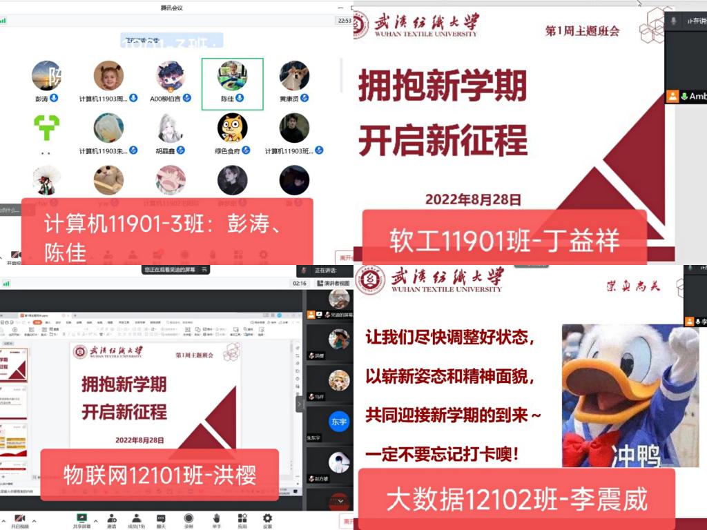 班会上,各班班主任带领同学们学习了湖北省第12次党代会精神,全面了解湖北近五年经济发展取得的七大成就,并学习了实现美好纺大新愿景的“三步走”战略和“一二三四五六七”发展思路。随后就《永利yl23411集团官网员工疫情防控违纪违规处分暂行办法》、开学期间公司防疫管理要求进行了重点学习,及对校园疫情防控违规违纪行为案例及情况进行了通报,再次增强了同学的疫情防控意识。最后从调整作息时间、提前了解并预习功课、调整心理状态、制定计划目标等方面给予了同学们做好开学准备的建议,号召大家尽快调整好状态,以崭新姿态和精神面貌,共同迎接新学期的到来。以下是部分班级线上班会剪影。