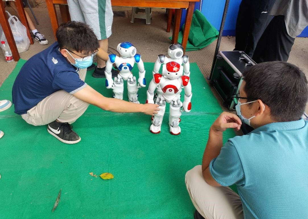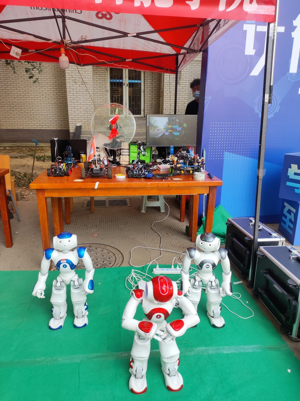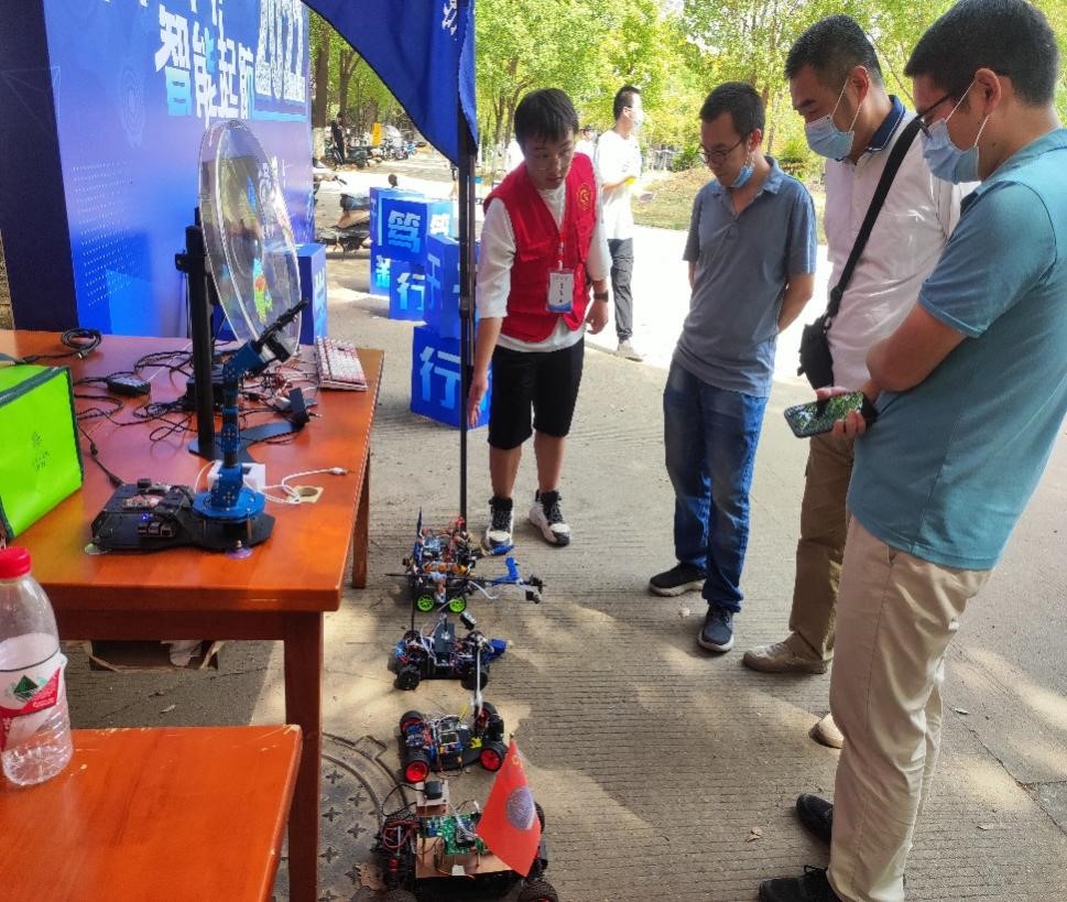 5栋宿舍楼下迎新报到现场,展示了公司1024工作室成员参加比赛的格斗机器人,伴随着音乐的节奏,这些机器人附和着音乐跳起了广场舞。还有研究生员工自己调参的裸眼3D风屏,在不需要任何辅助设备的情况下,即可获得具有空间、深度的逼真立体形象,充分展示了计算机的专业魅力。