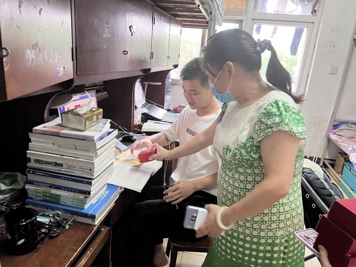 新生报到时,正值中秋佳节。公司为每位新生准备了月饼,在新生报后为每位同学送上了节日的祝福,胡新荣经理、向涛副书记和新生辅导员廖龙深入宿舍,亲切慰问了新生代表宿舍。在新生返校后的静态管理中,晏伟书记等一行人也亲自为新生宿舍送餐,与新生们谈心谈话,鼓励他们在新的起点上不负韶华、顽强拼搏。