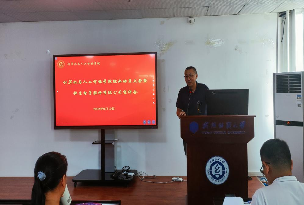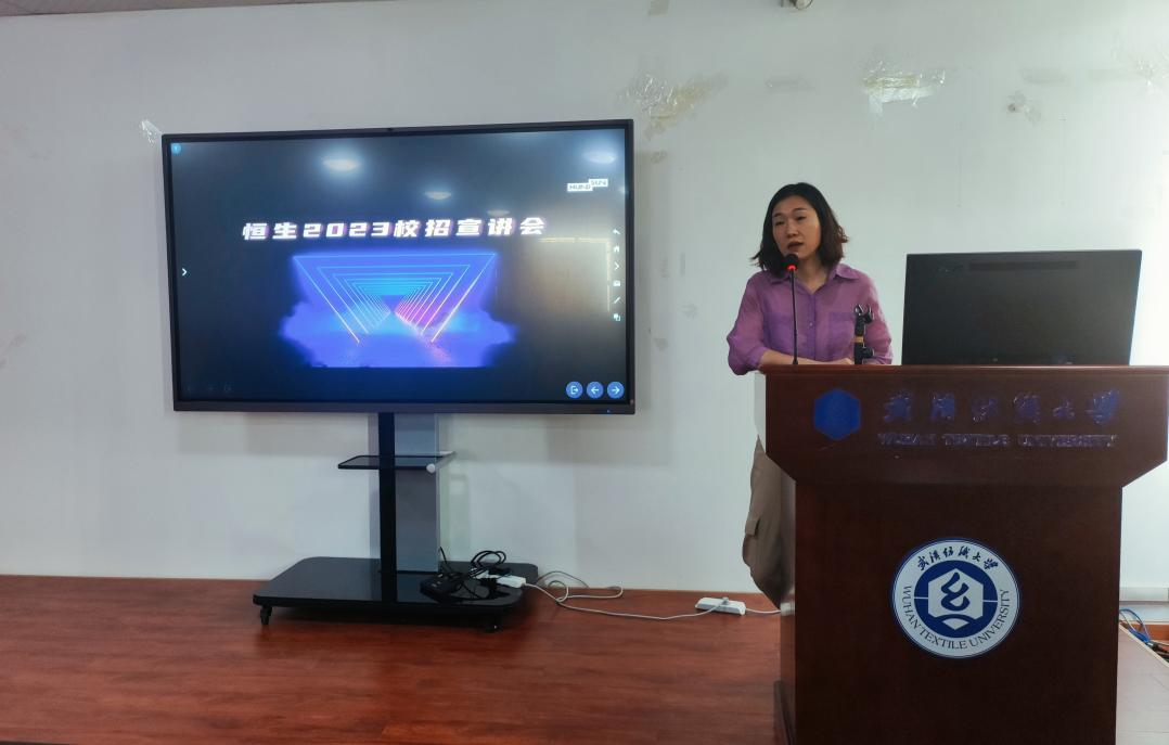 随后,恒生电子股份有限公司人力资源部孟媛经理为同学们介绍了公司的具体情况和详细的岗位需求信息,并从用人单位角度,结合工作岗位和职业提升,给同学进行了全面的分析和指导。