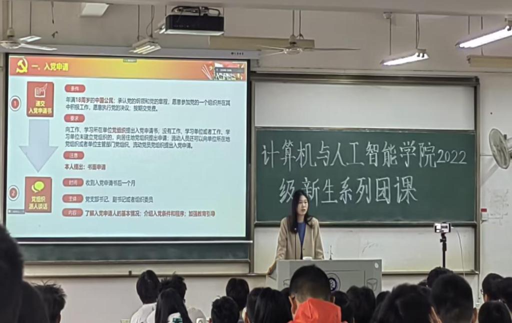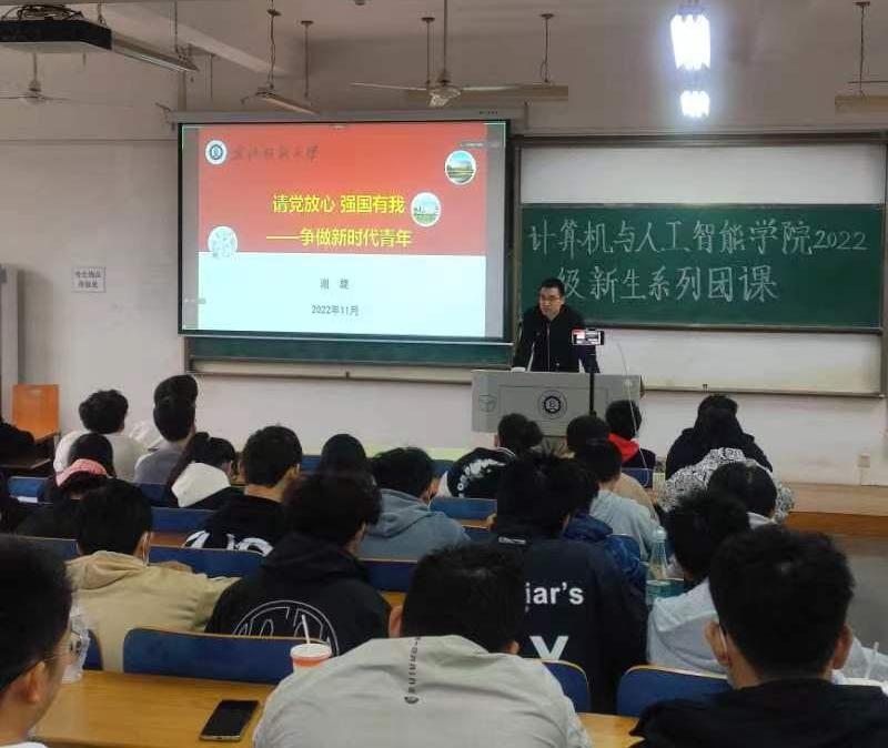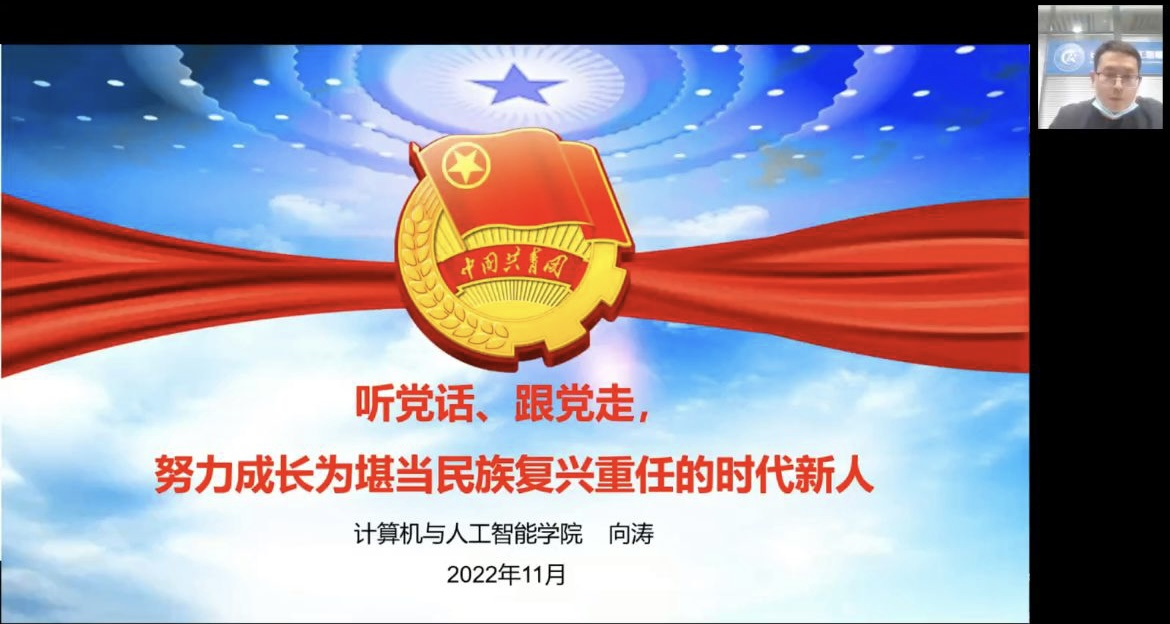 向涛副书记作新生团课报告,他简要介绍了2022年青年马克思主义者培养工程院级团校课程安排和公司团委的组织架构情况,并从第二课堂、基层团建、青年大学习、推优入党等方面介绍了团学工作内容,向同学们展示了公司团学组织开展的多彩缤纷校园活动。同时,向书记寄语计智学子,生逢其时当珍惜难得机遇,要肯于坚持、不断学习,勇于创新、拼搏自信,将个人成长成才融入国家发展的需要中。