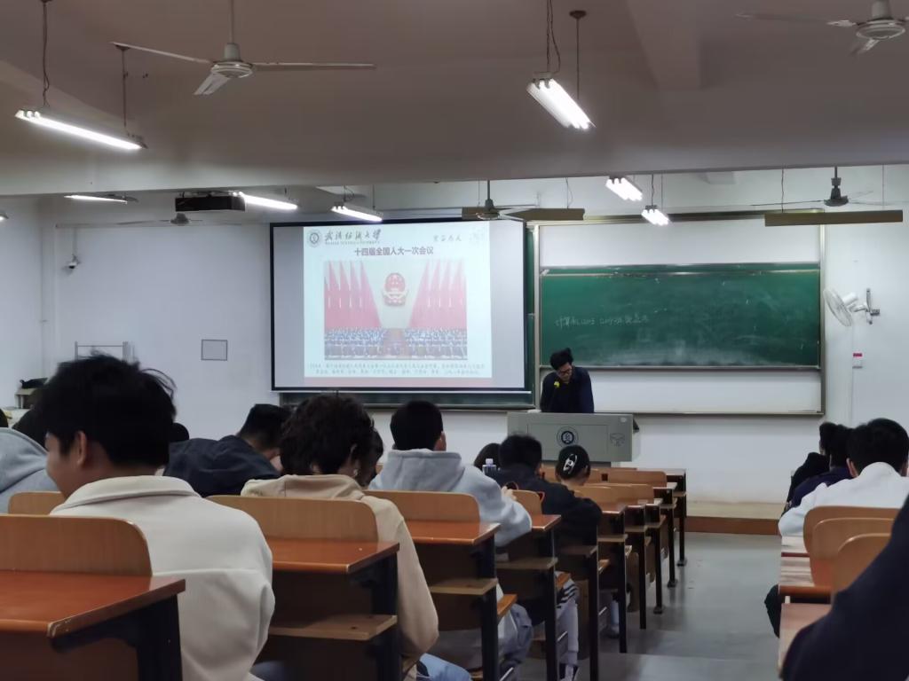 班主任从两会从何而来、两会讨论什么、两会设置方式三个方面入手,向同学们解读了两会的含义。随后,班主任向大家展示了两会期间政府工作2023年的重点方向以及报告的简版,帮助大家明晰在2023年的奋斗方向,鼓励大家在2023年有所作为。