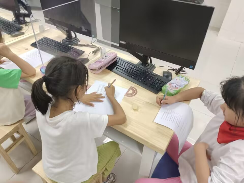 志愿者在小朋友们心中种下的“计算机科普”小苗相继开花结果,我们也快到了要和孩子们说再见的时候了。高年级同学迎来了考试前最后一节复习课,志愿者们课前进行了反复的斟酌考虑择出最具代表性和趣味性的题目,并进行知识点的分类与阐释。先做题再讲题从而确保孩子们能够完全吃透每一个编程细节。屏幕上海底世界里,小朋友们举一反三,让更多的动物在水里来回遨游;绿色的森林里,小鸟变换姿态地飞行,被狙击后迅速不见……优异的做题结果让志愿者们内心无比自豪,也对下一次课孩子们即将交出的考卷充满期待。