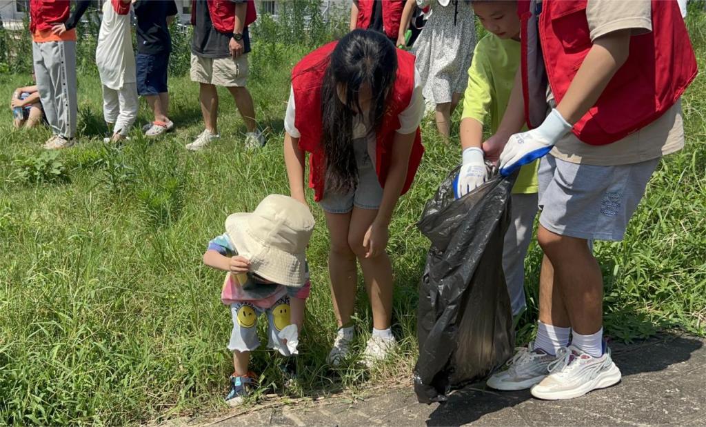 在盛夏的上午,志愿者们紧紧牵着自己一对一的小朋友,带着孩子们出了门。绿阴铺野换新光,熏风初昼长。大小孩子们拿上垃圾袋、手套、抓取工具等清理工具在艳阳下一起进行巡河,检查并清理河岸和周边的垃圾。回到社区后,孩子们都已满头大汗却没有丝毫的负面情绪。当小老师问到“今天上午你们都学到了什么啊”?孩子们响亮而大声地回答“保护母亲河!”、“过马路要注意安全!”、“要牢记各类报警电话!”......