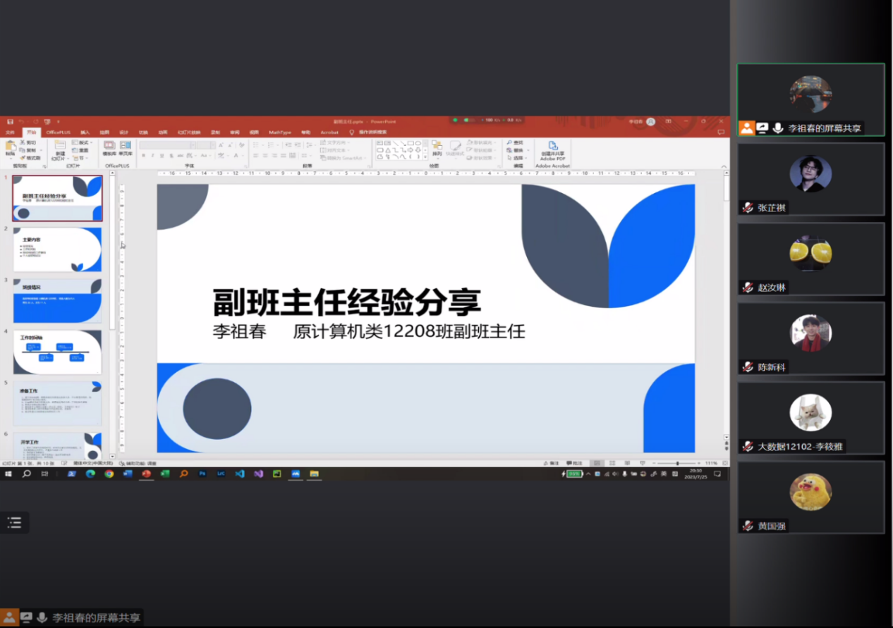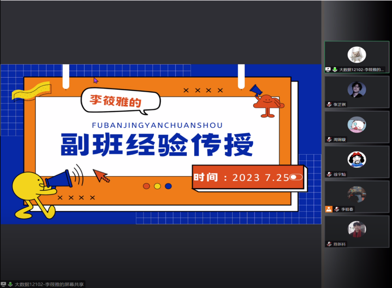 为帮助2023级副班主任尽快适应角色、熟悉工作、明确职责、提升工作能力,永利yl23411集团员工会团队于7月25日在线上开展了优秀副班主任经验分享会。本次分享会由五位2022级优秀副班主任以及2023级本科生辅导员易凡老师主讲,全体2023级副班主任成员参加,共同分享交流。