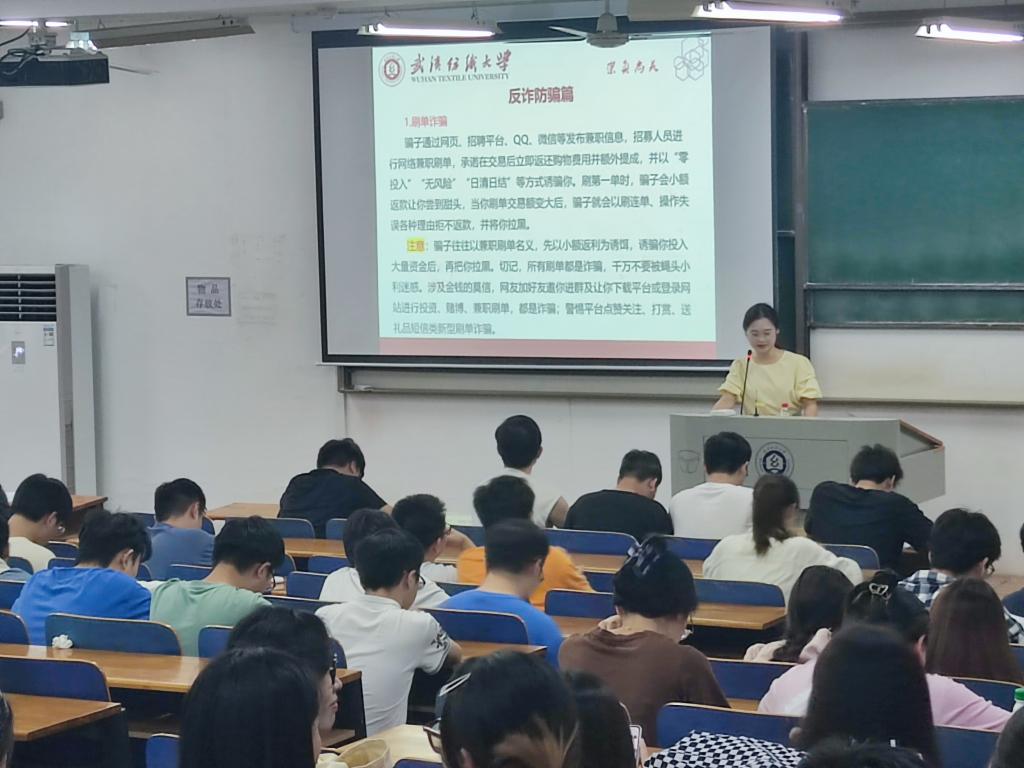 班会上,各班辅导员首先进行晚点名,查清员工去向。随后辅导员结合具体案例,讲解了在日常生活和放假期间所存在的各类安全风险隐患,重点针对电信诈骗、网络贷款、交通安全、消防安全等方面进行了提醒,引导同学们积极规避各类风险因素,在提升个人安全防范意识的同时也承担起排查家庭安全隐患的职责。随后提醒大家在日常学习生活中,遇到困难或危险时要及时寻求辅导员的帮助,必要时及时拨打紧急求救电话。另外在学习中要善于调适和缓解各类情绪压力,保持愉悦的心情,更好地面对学习中的困难和挑战。