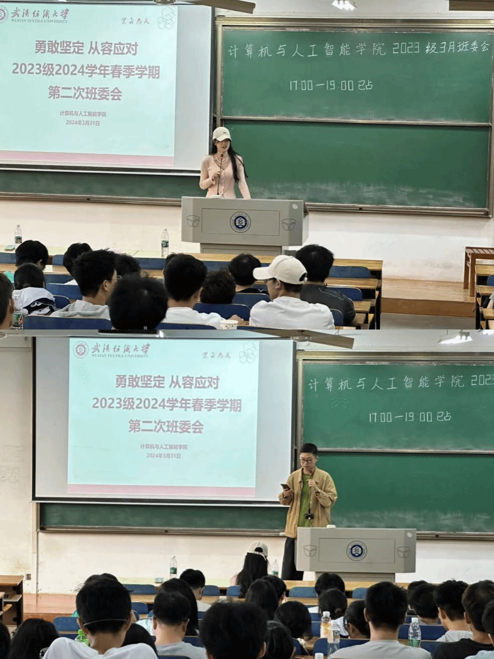 会议伊始,各班班委代表依次上台从班级总体情况,班级学风建设,班级文体活动,班级调研这四个方面对本班3月基本情况和班委工作情况进行了详细地概括和总结。会上,各班委根据对班级基本情况的分析,班级同学的心理情况,学习问题和工作重点,针对一些典型的数据和例子分析了班级内同学不规范行为的原因并提出了管理建议。同时,在与其他班级的交流学习中借鉴学习,打破了信息壁垒,有效提高了年级各班级建设效度。