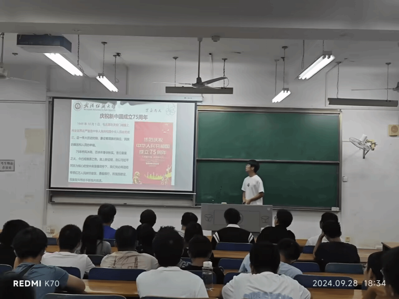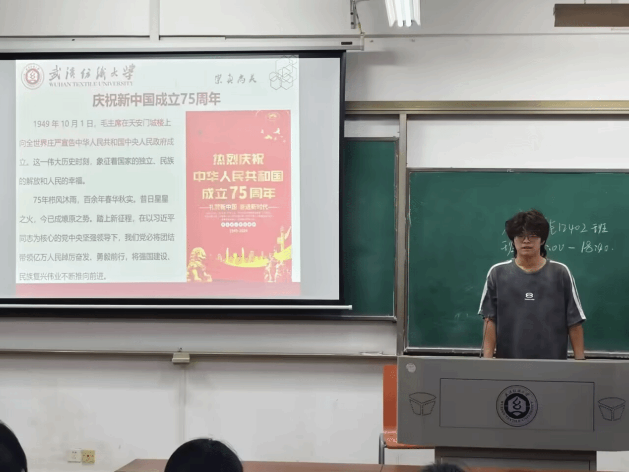 班会开始前,辅导员清点员工的参会情况,对未参会员工逐一排查确认,确保员工安全。班会上,班主任先介绍了国庆的由来,强调了国庆深刻的历史意义,又以“七十五载长歌奋进,赓续前行再奏华章”为切入点,回顾了随新中国成立七十五周年所发生的大事件,介绍了新中国发展的伟大成就,丰富了员工的知识积累,进一步激发了同学们的爱国热情,引发进一步思考,反思新青年的发展责任。
