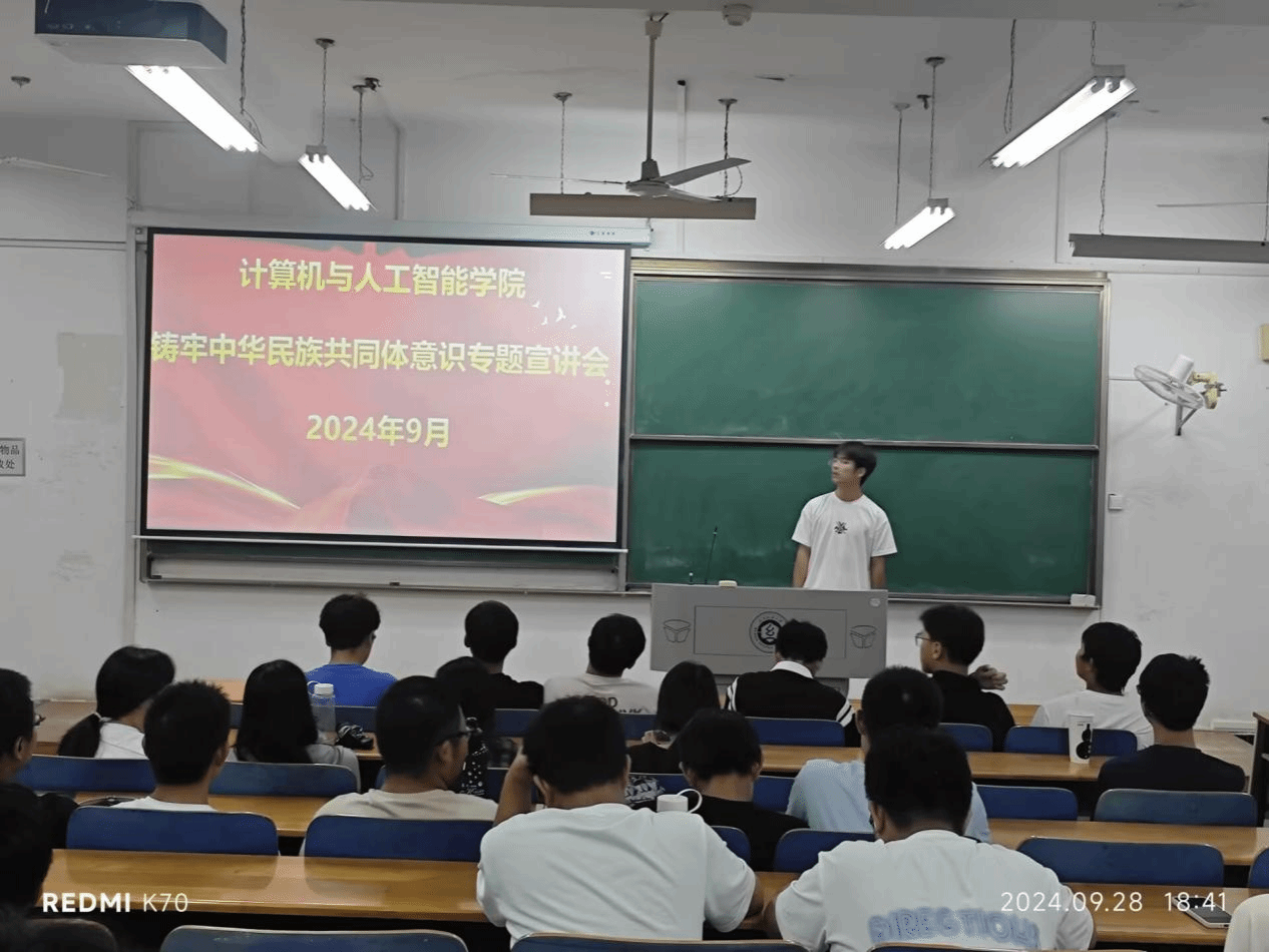 其后进行了“铸牢中华民族共同体意识”专题宣讲会,从我国的民族介绍开始,强调我国民族在政治上团结统一,文化上兼容并蓄,经济上相互依存,情感上相互亲近。强调青年应时刻怀有浓郁的民族情感和爱国情感,致力于推动中华民族走向包容性更强,凝聚力更大的命运共同体。