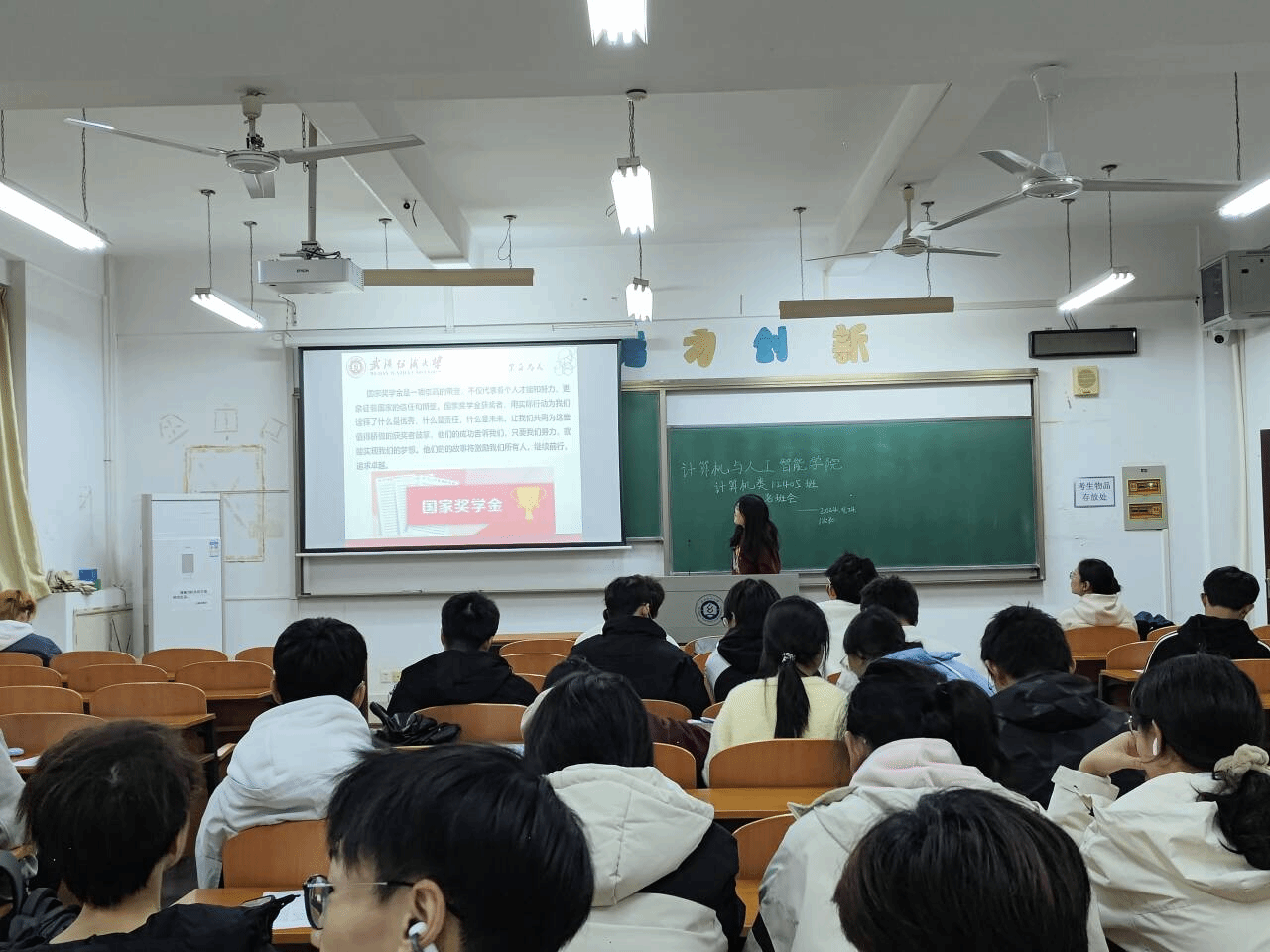 班会开始,各班级班长清点到会人数,确认员工的在校情况。随后班主任从对国家奖学金的讲解开始,让大家对国家奖学金有更清晰的认识,随后用优秀学长学姐的事例向同学们科普想要获得国家奖学金应该做好什么准备,激发同学们的学习热情。