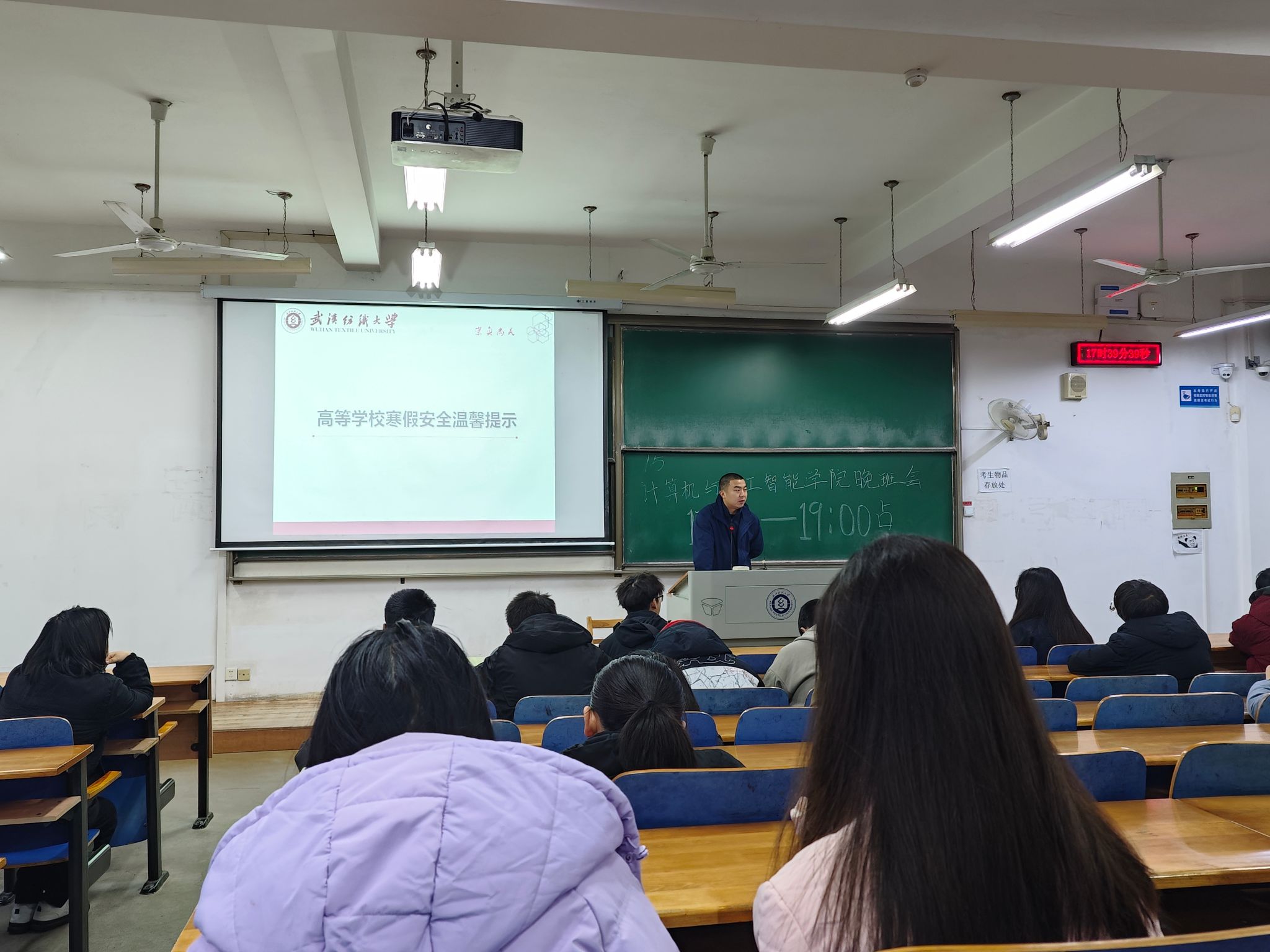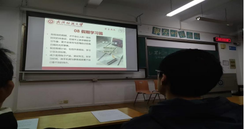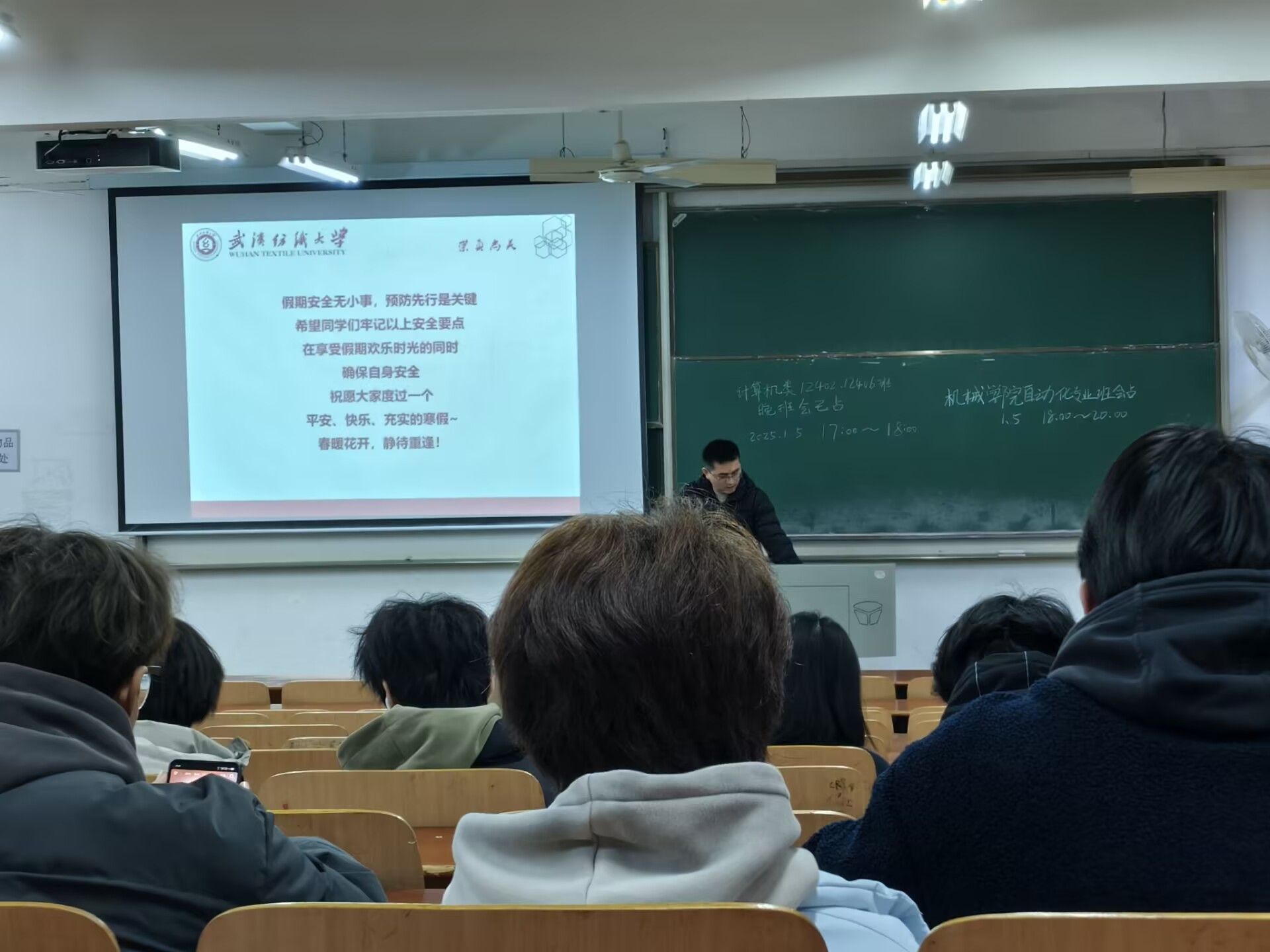 班会开始前,由班长进行晚点名确认员工的报道情况,并向辅导员说明未报到员工的名单及事由。随后由辅导员向大家通知放假消息以及展示湖北省教育厅发布的《高等公司寒假安全温馨提示》。