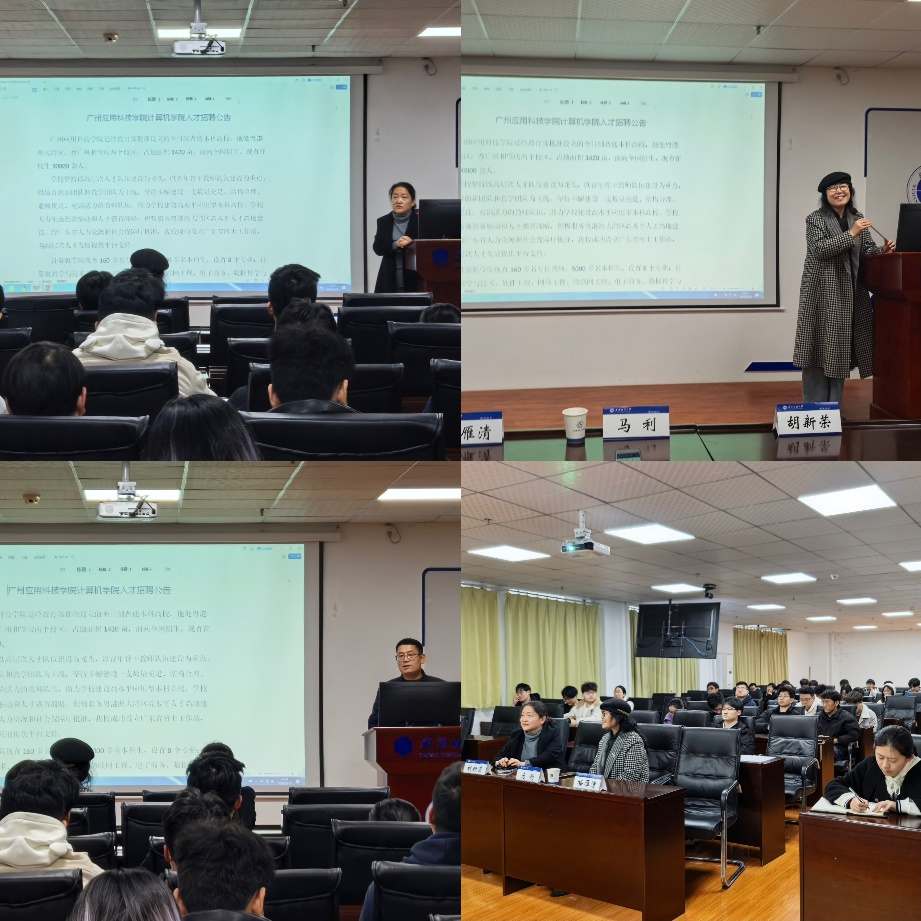 胡新荣向大家详细介绍了广州应用科技公司计算机公司的发展前景与合作方向,激励研究生们踊跃投递简历,积极把握春季招聘的宝贵就业契机。马利介绍了广州应用科技公司计算机公司的校情校史、招聘需求、薪资待遇等内容,让员工们对广州应用科技公司计算机公司有了更全面的认识。同时,马利还分享了实习生和毕业生在公司的工作经历和成长故事,激发了同学们的求职热情。