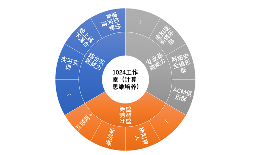 公司探索“专创融合(专业基础与创新能力)、赛练结合(学科竞赛与实践练习)”的强耦合实践创新模式,成立实践教学组和学科俱乐部,以“1024”工作室为重点,构建1+3+N的实践创新能力平台。开展“三个一”活动,做到让每一个员工进入一个团队、参与一个项目、参加一个竞赛。