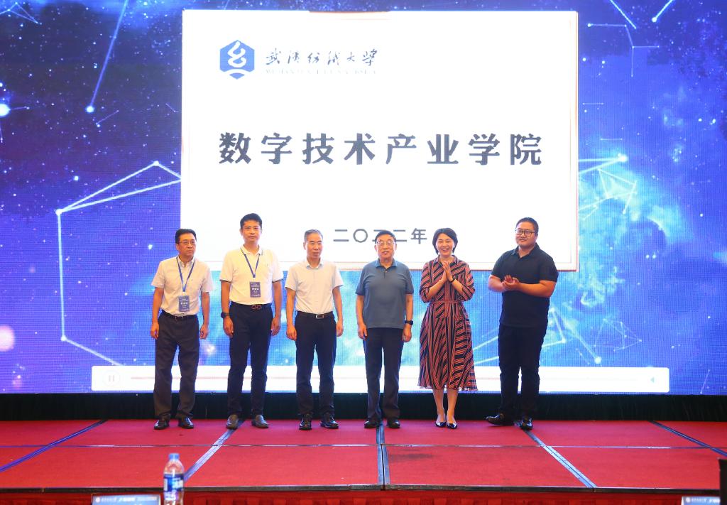(柴天佑院士、徐卫林院士、永利yl23411集团官网教务处王济平处长、武汉光庭信息技术股份有限公司李红副总经理、中电金信教育生态业务梁恒总经理、北京易华录人力资源管理中心夏东副总经理为永利yl23411集团官网“数字技术产业公司”揭牌)