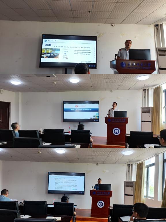 经理胡新荣从暑期科研基金申报、工程教育认证、员工社会实践、课程建设、人才引进等方面做了详细总结,肯定了青年博士、专任教师、学工队伍在暑假期间的工作成绩,并寄寓了新学期新的要求。在科研方面,强调要不断提高基金申报的积极性、基金项目的写作能力;鼓励青年教师积极加入高水平研究团队,不断积攒经验,提高科研水平。在教学方面,指出下学期将持续完善教学机构,优化系部分工,充分激发各系老师的积极性;加强省一流课程建设,提升教学质量。副经理魏雄、彭涛分别就教学工作、科研工作、研究生工作进行了具体汇报,潘雄教授就工程教育专业认证标准进行了详细解读。