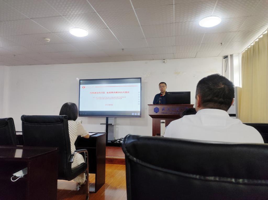 刘戈以“加快建设先行区 全面推进美好纺大建设——湖北省第十二次党代会精神宣讲”为题,从全面把握习近平总书记五次考察湖北重要讲话精神,深刻认识建设先行区的核心要义,加快建设全国构建新发展格局先行区实现路径和全面推进美好纺大建设的战略举措四个方面宣讲了省第十二次党代会精神。