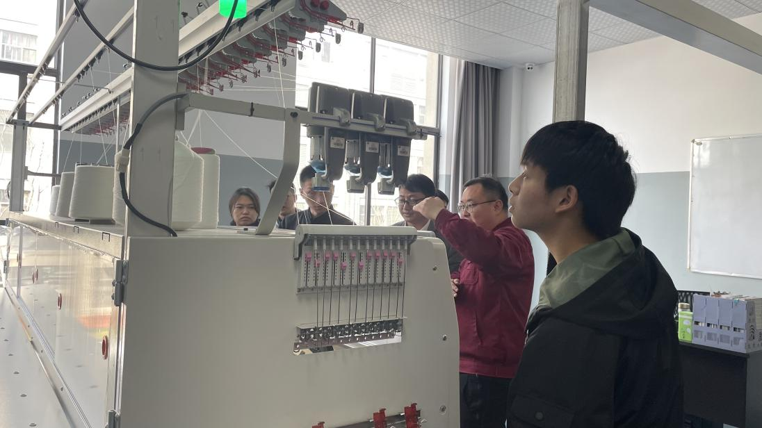 此外,宁波慈星股份有限公司组织师生在慈星公司进行了交流学习,进一步了解了针织生产设备的结构和零部件构成,加深了产品从设计到生产的全过程认识。一线成型设备是慈星研发的国内新技术,在工程师现场操作下,师生们观看了从一根纱线到一件毛衫的整个过程,了解了一线成型技术的优势和技术难点。