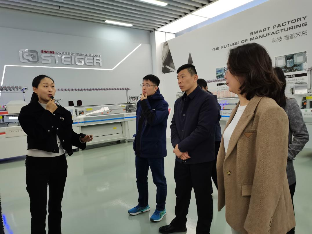 团队一行先后参观了慈星企业展厅、装配车间、智能车间、软件实验室等。在参观展厅过程中详细了解了慈星股份有限公司的发展历程、组织形式、科研成果与荣誉、核心技术、典型产品的情况,对慈星有了更深入的认识。在装配车间和智能车间,沉浸式地体验了现代针织生产的智能化程度,包括设备的智能化和生产管理的数字化。在软件实验室,通过与现场工程师的交谈,认识到了机械设备软件研发的难点、工艺知识的重要性。同时,师生和现场工程师进行了座谈,深入探讨了企业目前遇到的创新难题以及未来的发展方向。