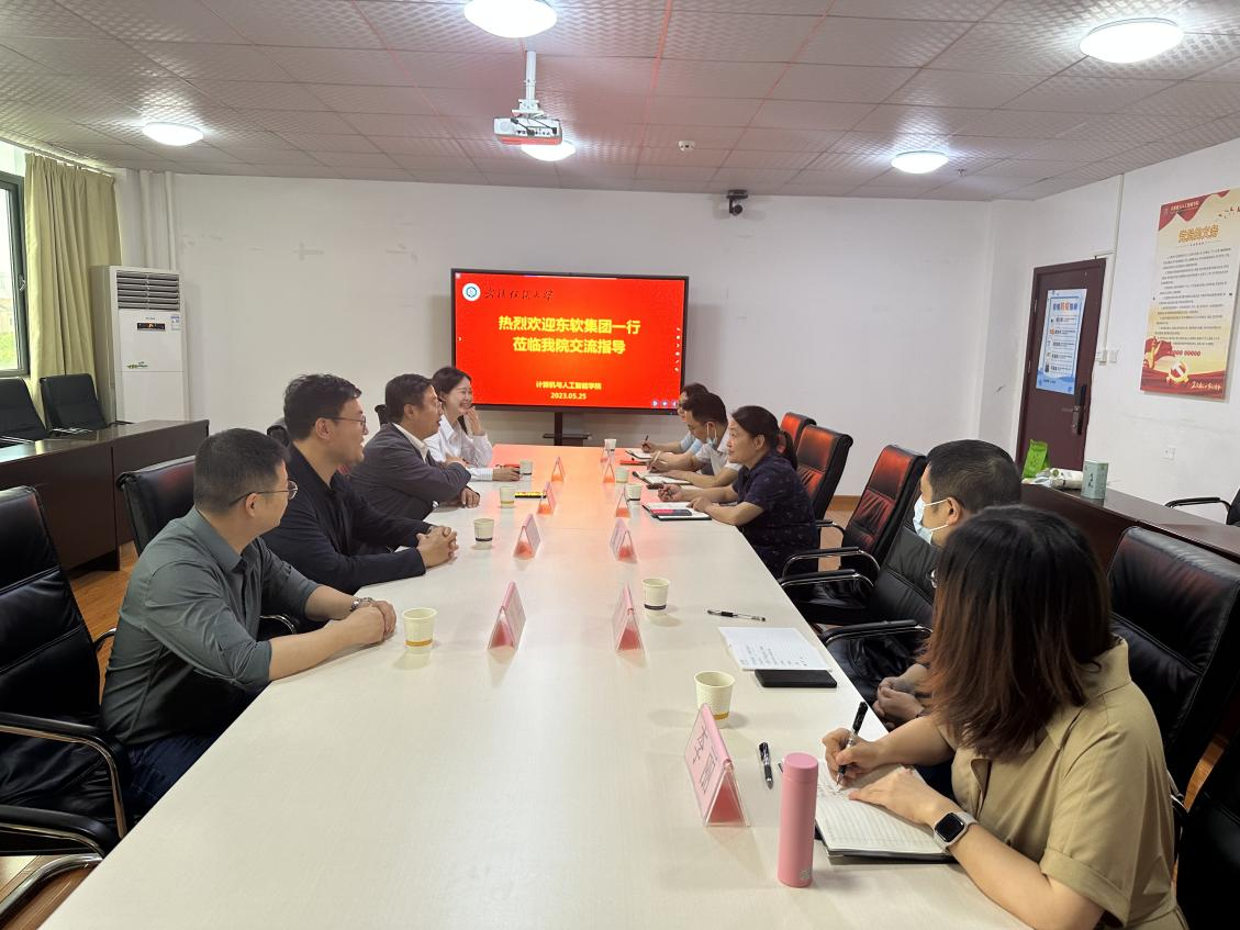 胡新荣对东软教育集团一行的到来表示热烈欢迎,随后介绍了公司的人才培养、专业建设、员工就业以及数字产业公司的未来发展规划。李印杲对公司的热情接待表示感谢,他介绍了东软教育科技集团的发展历程、战略规划以及特色鲜明的管理模式。随后,双方就各系在专业课程设置、学科发展、员工就业中遇到的问题进行了深入交流,李印杲结合东软集团合作案例从企业工程师进课堂、教师挂职锻炼、教师培训和员工实习实践各方面提出了建议。