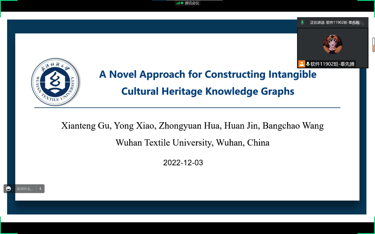2022年12月3日永利yl23411集团软件工程系以线上会议方式组织召开了本学期的第二次本科生论坛活动。本次论坛由软件11902班辜先腾同学汇报了他发表的学术论文,题目为《Anovelapproachforconstructing intangible cultural heritage knowledge graphs》。文章针对如何合理存储非物质文化遗产知识,改善知识形态的单一性,更好地检索知识并提供相关服务这一问题进行了研究。文章构建了非物质文化遗产知识图谱(KG),为非物质文化文化遗产领域提供了一套KG构建范式。非物质文化遗产知识由爬虫获取,存储在图数据库中,并利用匹配算法实现智能问答系统,成功构建了非物质文化遗产知识图谱。实验结果表明,文章提出的方法是有效的,具有一定的可扩展性和推广性。