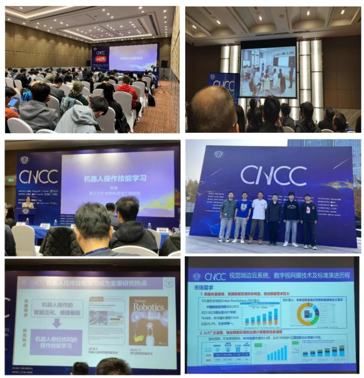 我们每个人的方向虽然不太一样,但是大会的议题广泛而深入,各位演讲嘉宾和专家学者们分享了他们在各自领域的前沿研究和创新应用,我们都能听到和我们对口的方向,学到了很多东西,让我们对行业的发展趋势和未来的发展方向有了更清晰的认识。其次,我们深受大会的学术氛围和互动交流所感染。各位专家学者们分享自己的见解和经验,通过与他人的交流,不仅能从他们的研究成果中汲取灵感,也对自己的方向有了更深刻的认识和了解。此外,大会组织方还安排了精彩的主题演讲和专题研讨会。我们有幸聆听了一些顶尖专家的演讲,他们深入浅出地介绍了自己的研究内容,并分享了对于未来发展的思考和展望。这些演讲不仅开拓了我们的思维,也激发了我们对技术创新和学术研究的热情。