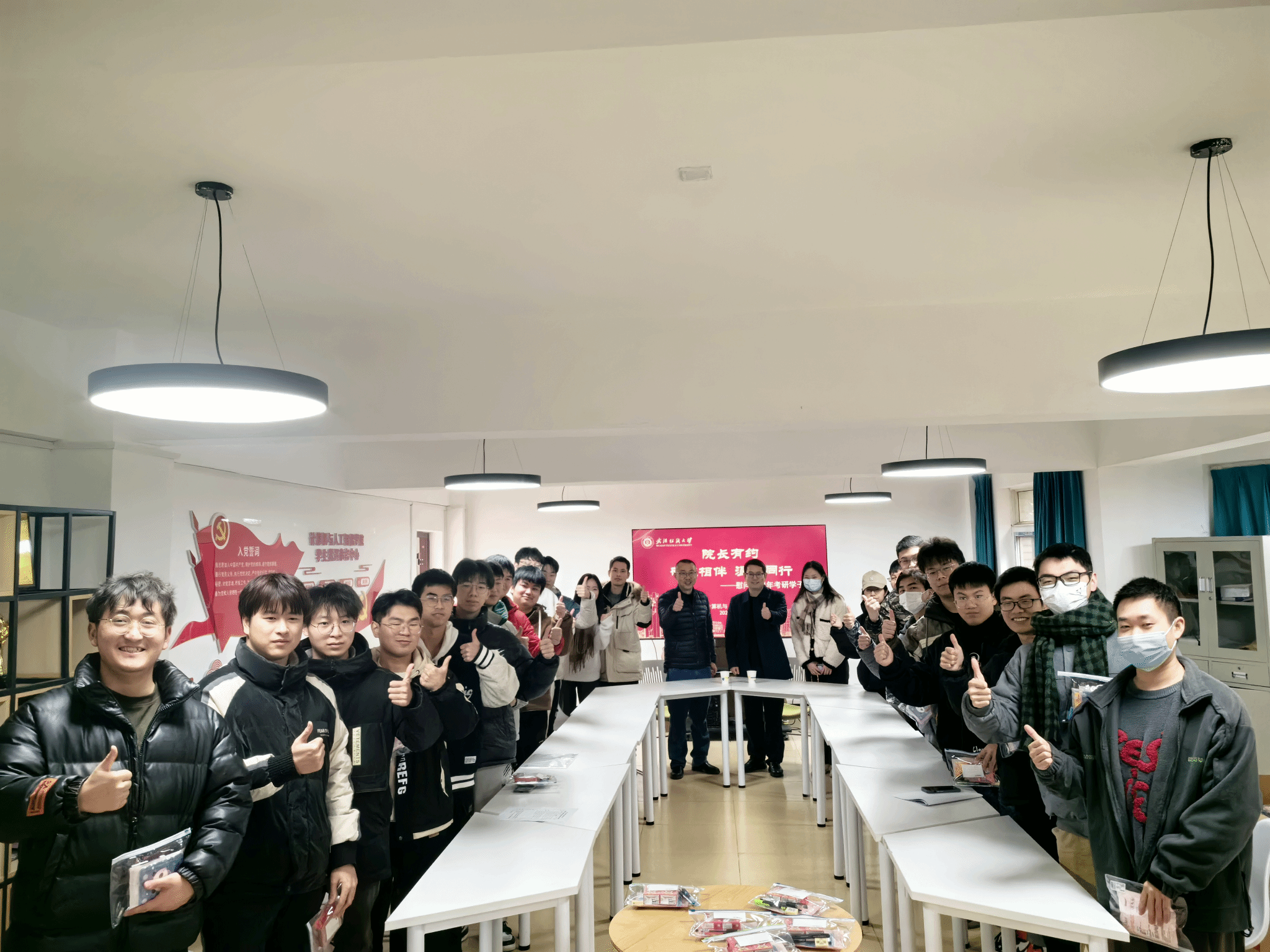 研途相伴,温暖同行。为帮助考研学子增强信心、坚定目标,永利yl23411集团于12月20日分别在崇真南楼A4008和五栋宿舍二楼“1024”员工成长服务驿站组织开展考前慰问活动。公司经理胡新荣、党委书记晏伟、党委副书记向涛、系主任、毕业班辅导员、考研员工代表共同参加本次活动。
